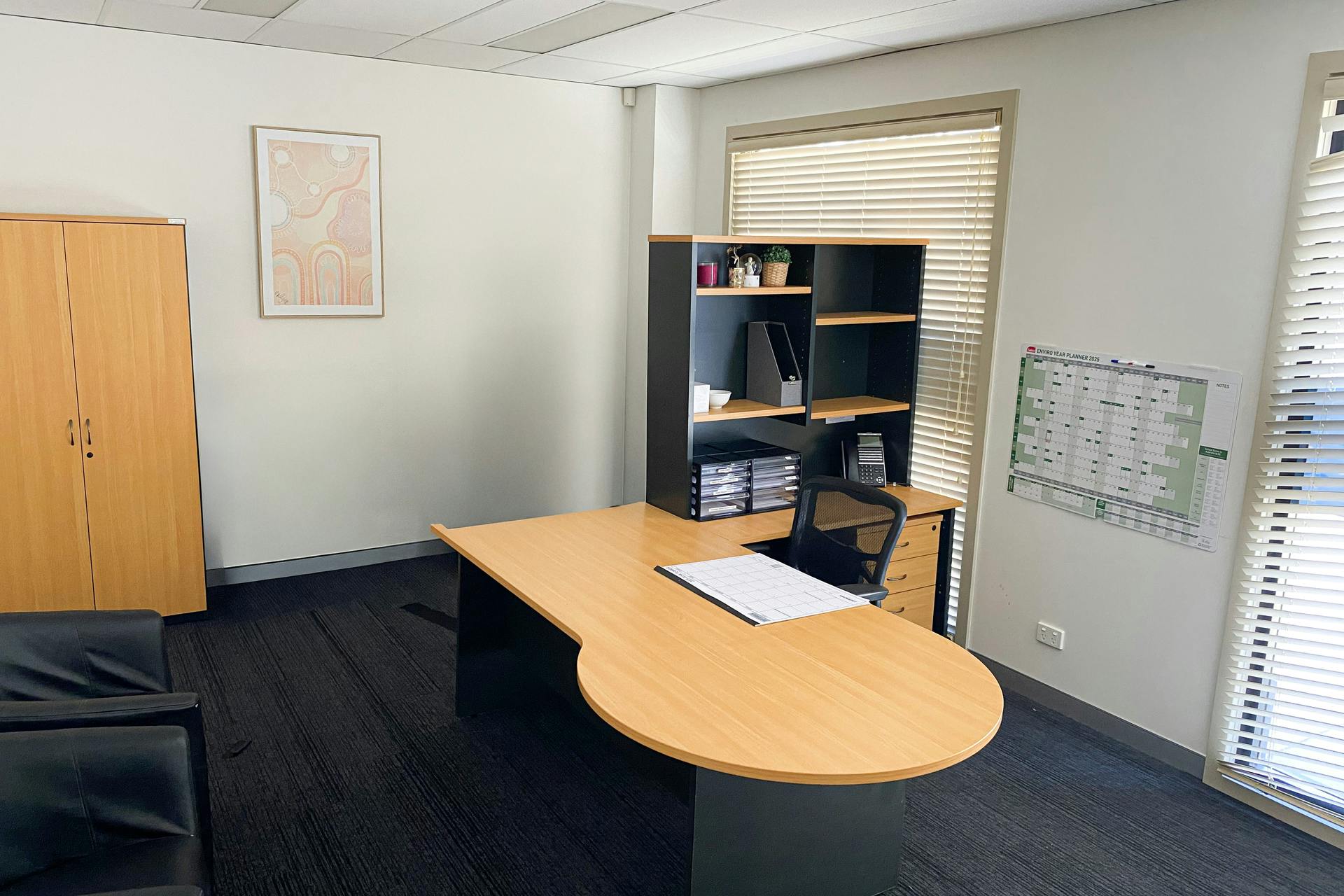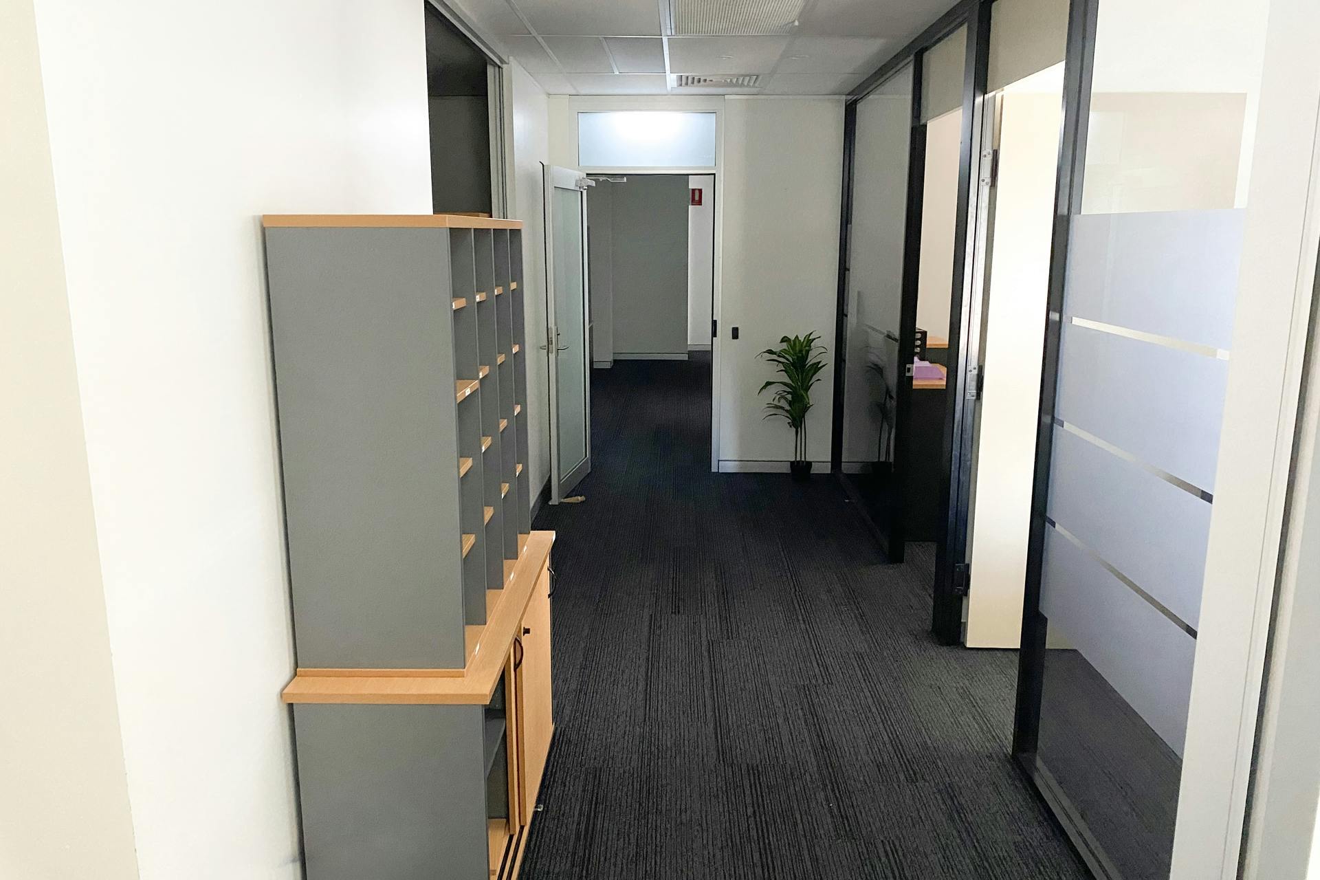 The premises provide a generous and functional layout of approximately 262 m², featuring an existing quality fit-out (available if required) comprising six private offices, a spacious open-plan work area, a dedicated boardroom / training room, and a large kitchen and dining area. The suite is fully air-conditioned and well suited to a wide range of professional and commercial occupiers.