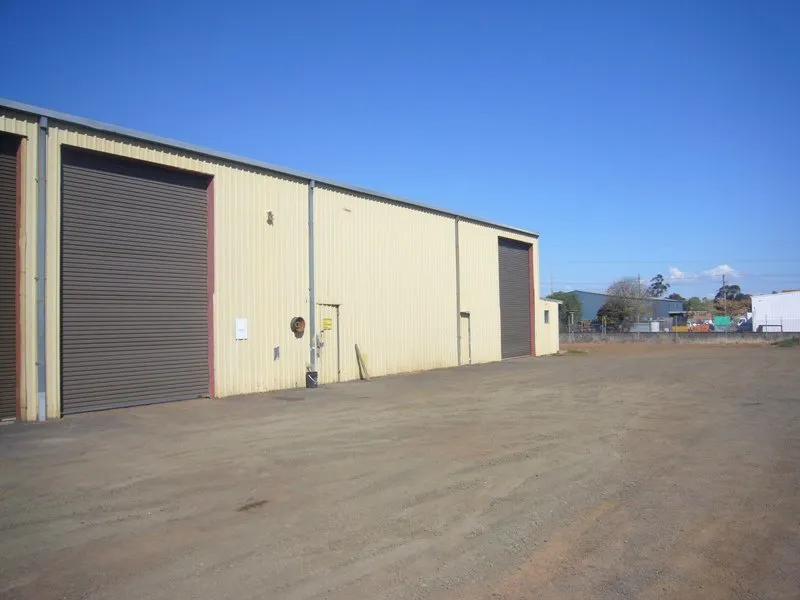 Medium sized industrial warehouse with yard storage at rear.