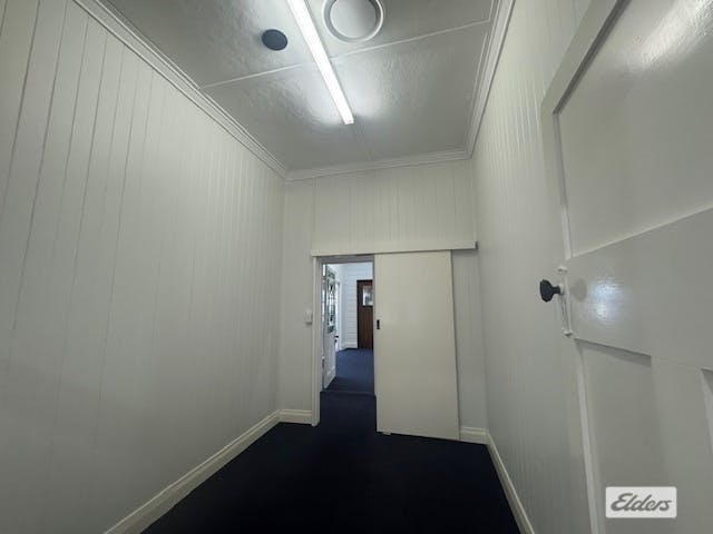 This well-presented commercial property features three private offices and a welcoming lobby area with a striking steel metal press ceiling, adding character and style to the space.