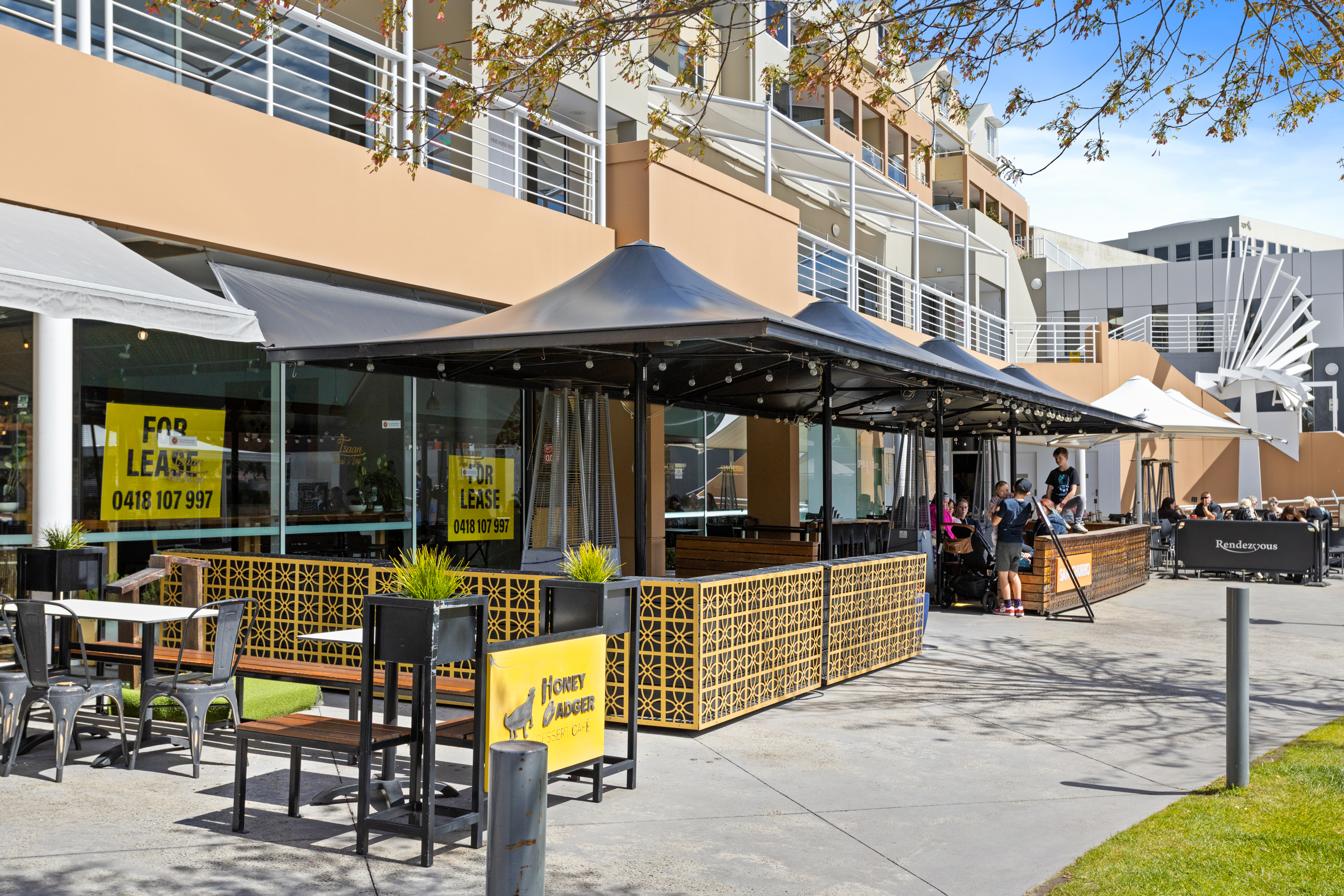 The 130sqm* tenancy benefits from a commercial kitchen, indoor/outdoor dining and bathroom amenity. The property comes with an existing fitout in-situ available for the use of the incoming tenant.