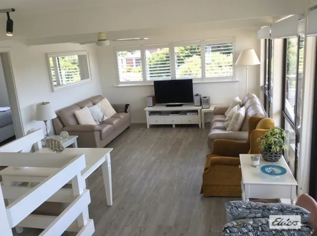 Bright and cheery 2 storey 4 bedroom home situated close to the South Lakes Golf Club and the River, large balcony gives views of both. 2 living areas 1 upstairs and 1 on the ground level with a spare single bed. 2 bedrooms 1 double and 1 single (2 beds) on the upper level and 2 double on the ground level. Fully equipped laundry with bar fridge. Outdoor setting for 6 on the balcony, open kitchen and dining. Includes R/C air conditioning, TV, DVD, Stereo and BBQ.Sleeps 8 guests Queen x 2 Double x 1 Single x 2