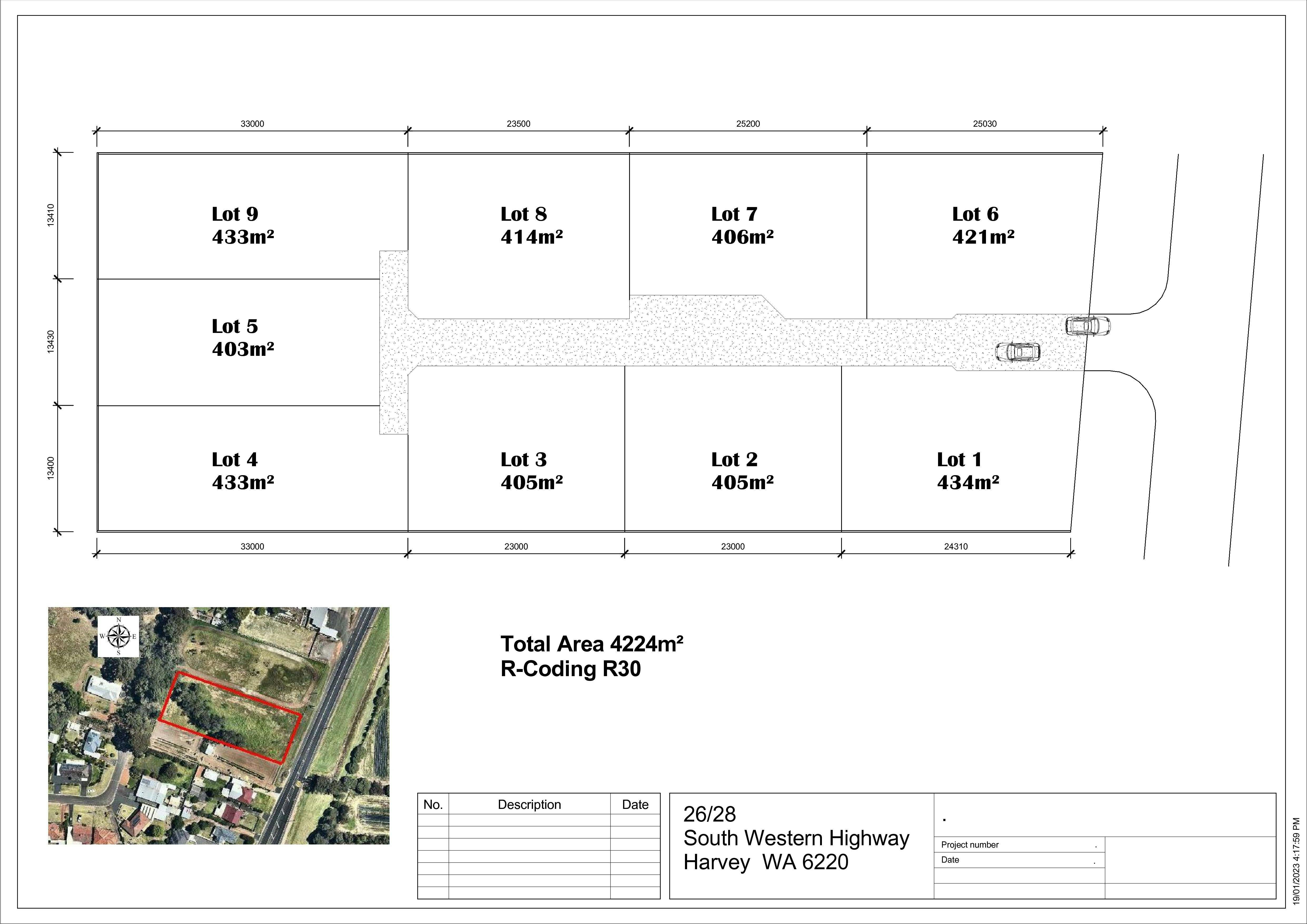 Plenty of opportunities on offer with this large 2,130.80sqm* block. Currently not connected to sewer, but still has the potential to subdivide into 3 lots, each with septics, subject to approvals. The adjoining block (28 South West Highway) has sewer connected at the rear of the block, with potential to also purchase, making over an acre (4,226m2*) of prime land minutes from the Harvey CBD with a combined frontage of 40 metres.Extend sewer from adjoining lot (28 South West Highway), upgrade to R30 (min 300 each Lot). Owner has a 9 lots approval over both blocks (26 & 28 South West Hwy).