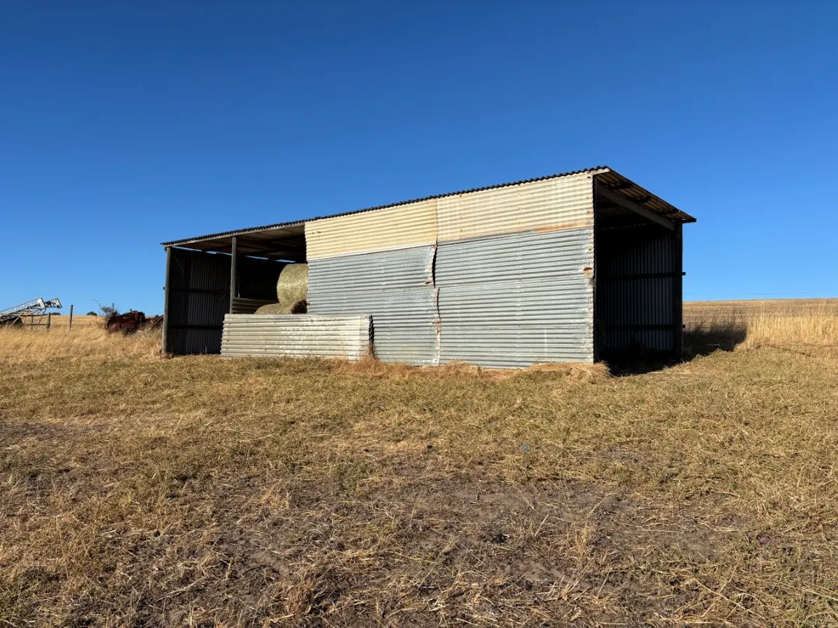 Improvements: Implement shed with power, earth floor and two large access doors suitable for vehicles and machinery.