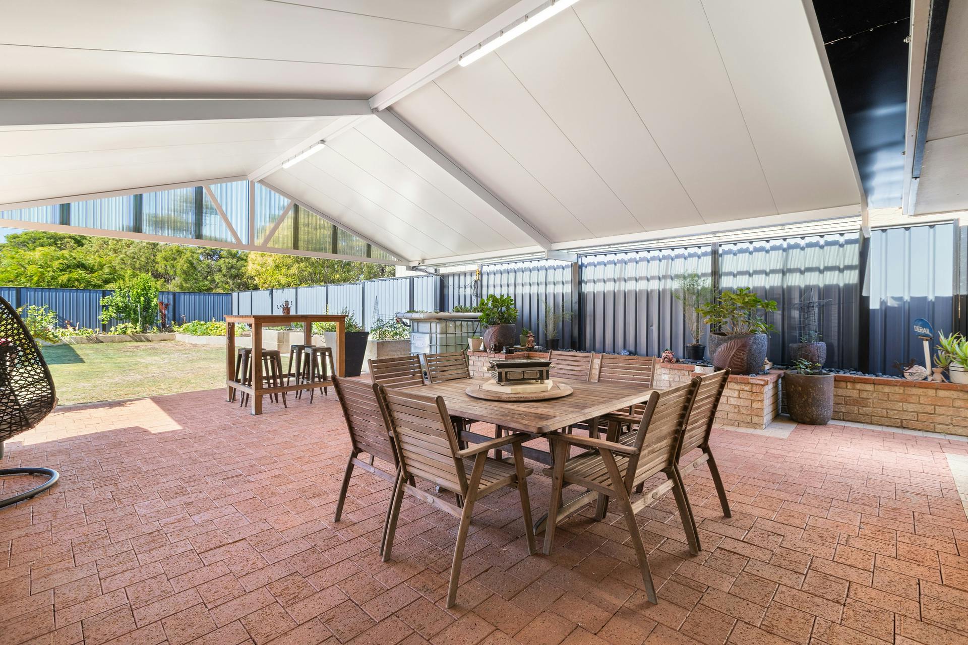 Do you love to entertain? The new gabled alfresco off the living area offers room to entertain to your heart's delight, with a cool deck ceiling, dropping the temperature during those hot summer days as you watch the kids playing in the big backyard, and of course, the man of the house is quietly content in his big workshop.