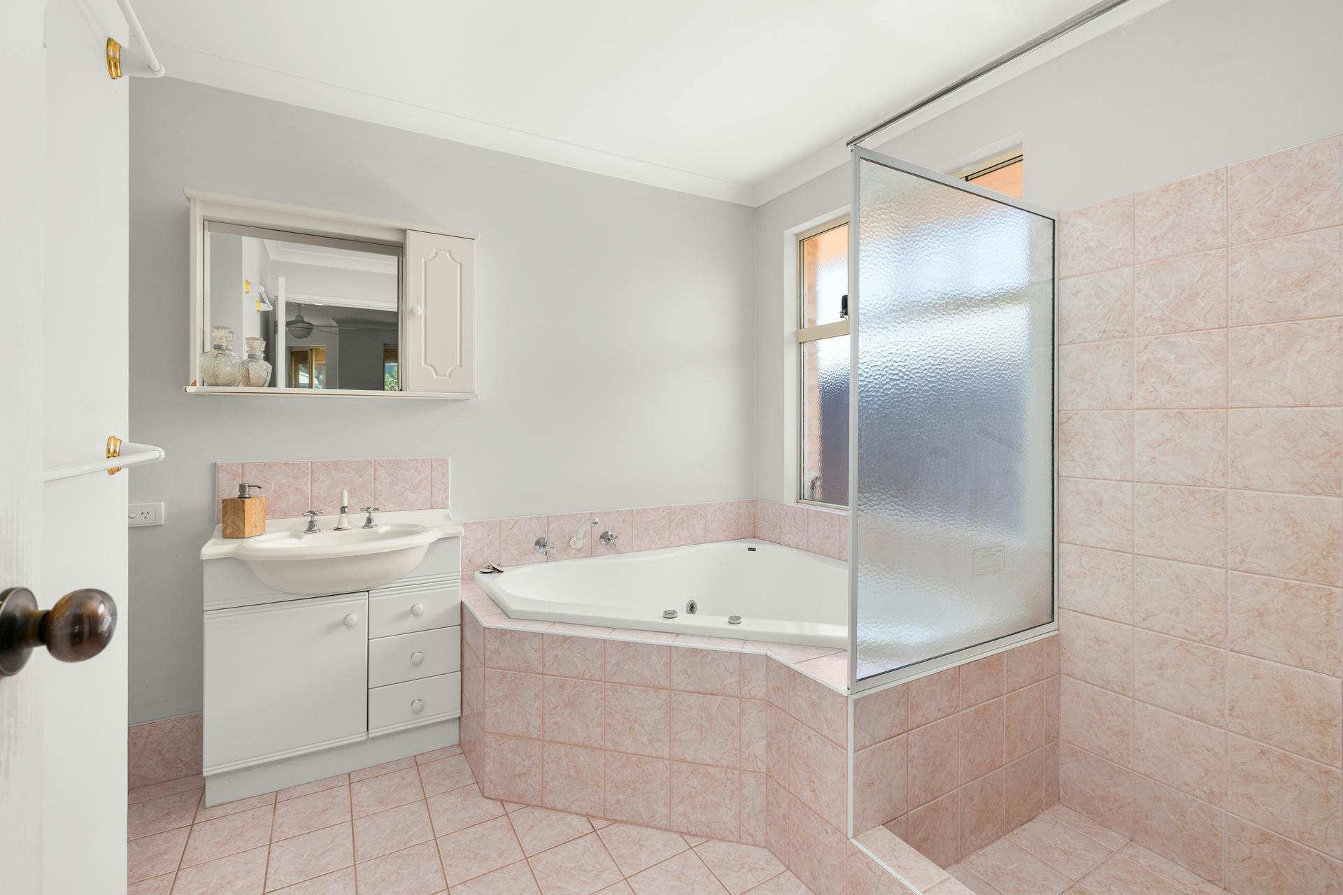 The spacious master bedroom offers a generous walk-in robe and a separate ensuite, with a separate shower, spa bath, and WC.