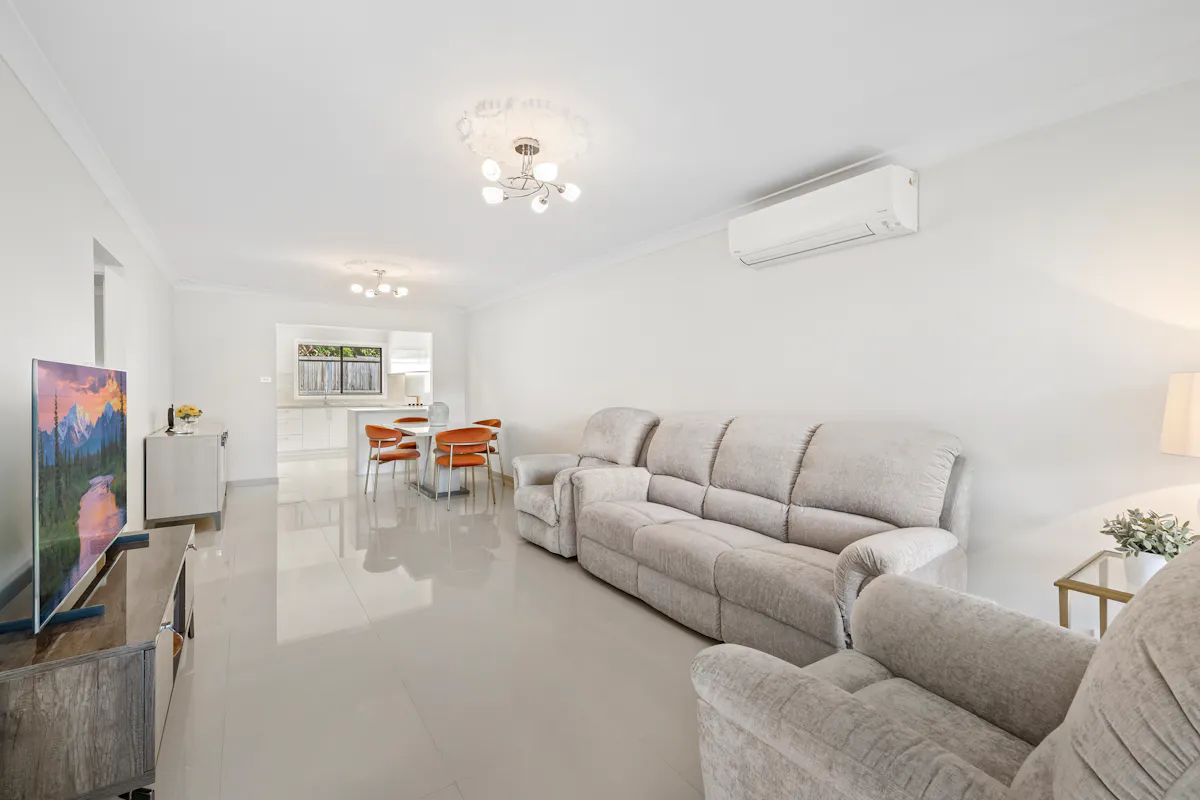 A complete interior renovation has created a fresh, modern feel in this beautifully presented villa, perfectly complementing its bright and airy ambiance. Boasting approximately 200sqm of space, it enjoys a quiet setting close to a range of conveniences, including shops, cafés, bus services to Strathfield Central, and is within walking distance to Cooke Park and Begnell Oval.The home features two queen-sized bedrooms with built-in wardrobes, a separate home office/study, and a fully tiled updated bathroom. The bright gourmet kitchen showcases quality Taj Mahal 40mm stone benchtops with Induction Cooktop and abundance of storage, internal laundry with matching cabinetry.