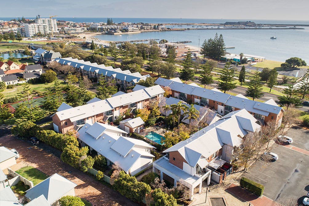 "The Quest Apartments Bunbury", a two-storey complex, just a stroll across the road to Koombana Bay, and not much further to the city centre.