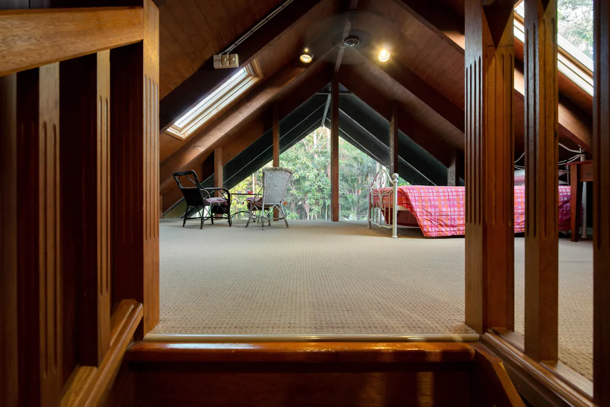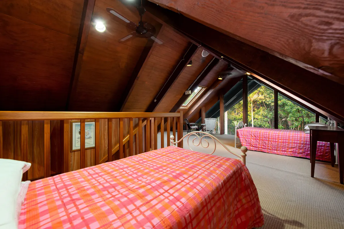 Loft/rumpus room on top level with views to the pool