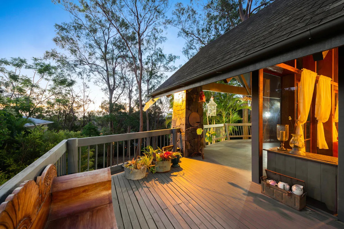 Large outdoor entertaining deck with views