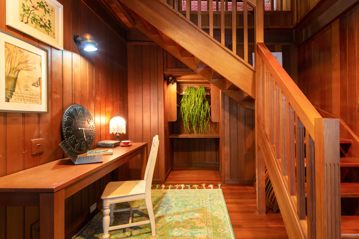 Accommodation wing with discrete stairway down to garage