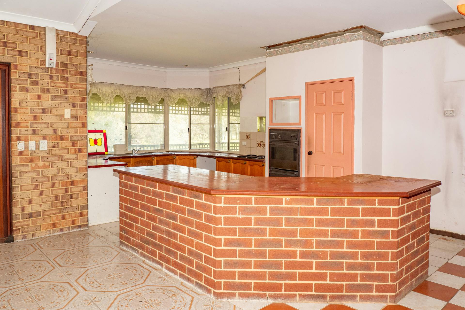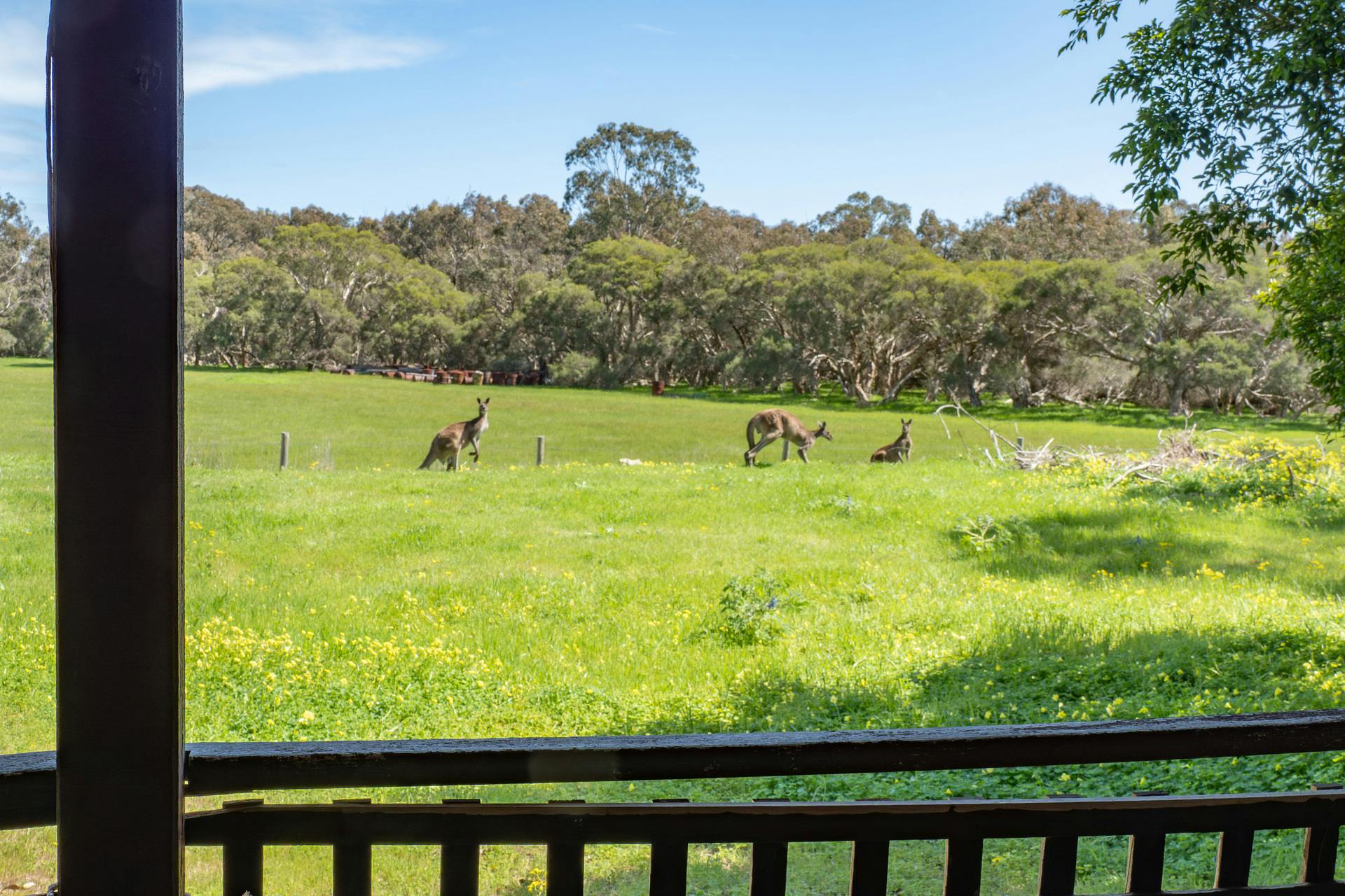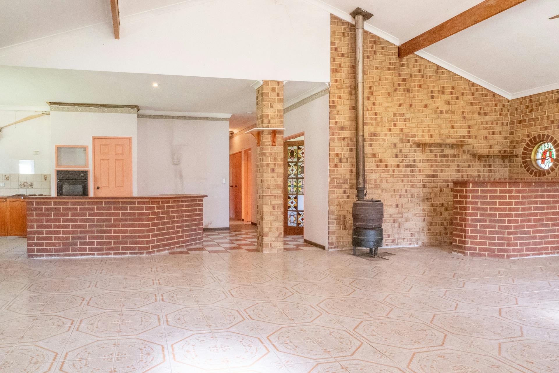 Your fenced and gated entry offers a winding drive through the sweeping land, with the home placed centrally within, along with a carport to the side for parking. A semi-enclosed verandah offers a choice of outdoor living options, with views across the picturesque vista, and plenty of native birds and wildlife to enjoy, including the resident kangaroos. Inside the home, your family hub offers a generous living and dining space around the central kitchen, with soaring high ceilings, exposed beams and feature stained glass windows. Ceilings fans, a pot belly fire and beautiful bay windows provide a comfortable space to relax, with the kitchen overlooking the room, including an in-built oven, plentiful cabinetry and a breakfast bar for casual meals, while a freestanding bar is built within the main living area.