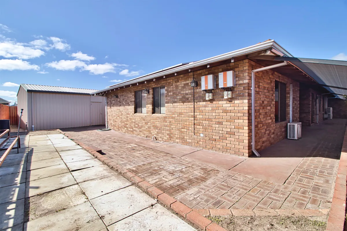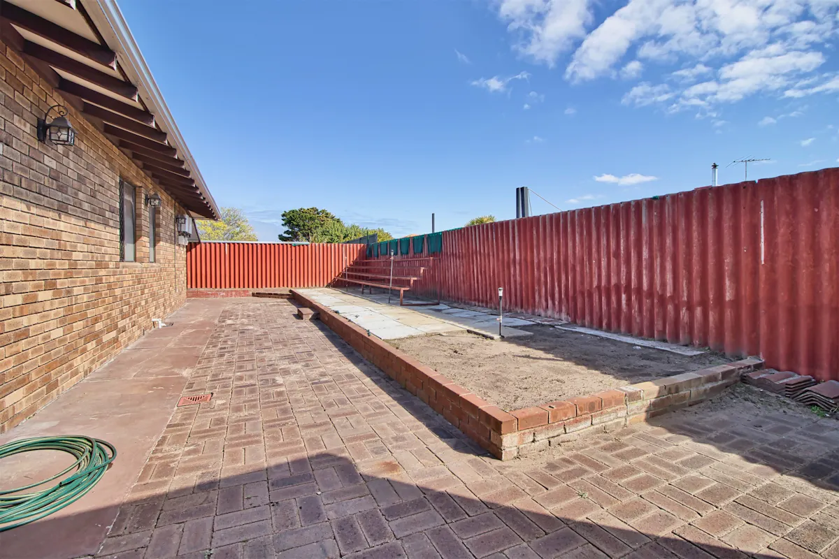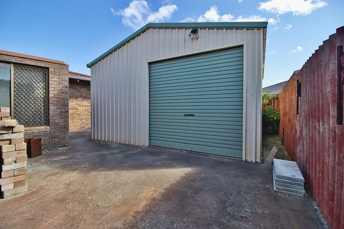 - Covered area with paving to the side of the home, plus an open paved garden with large 5m x 7m powered workshop, accessed via gated side entry