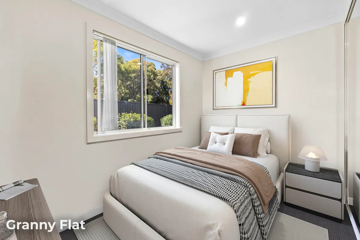 Privately positioned, the separate granny flat is near-new and thoughtfully designed, offering spacious bedrooms with built-in wardrobes, a contemporary kitchen, open plan living and dining, and a sleek, fully tiled bathroom.
