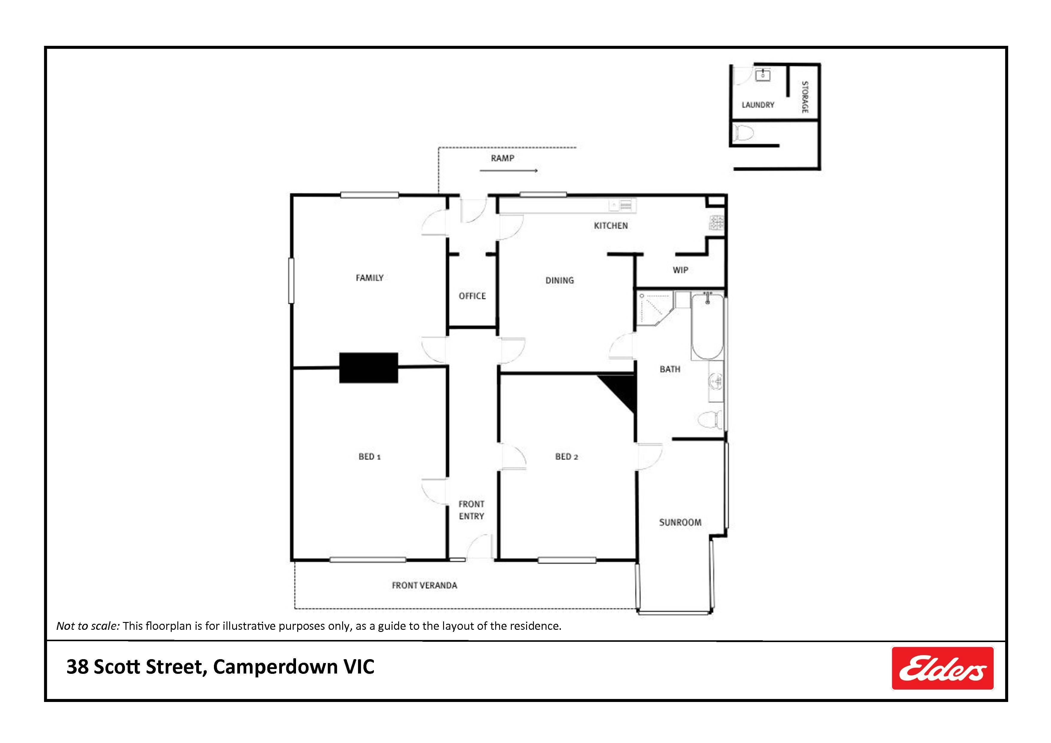 • Open kitchen with walk in pantry and adjoining dining room, separate family room, 2 bedrooms, sunroom, office/storeroom and family bathroom.