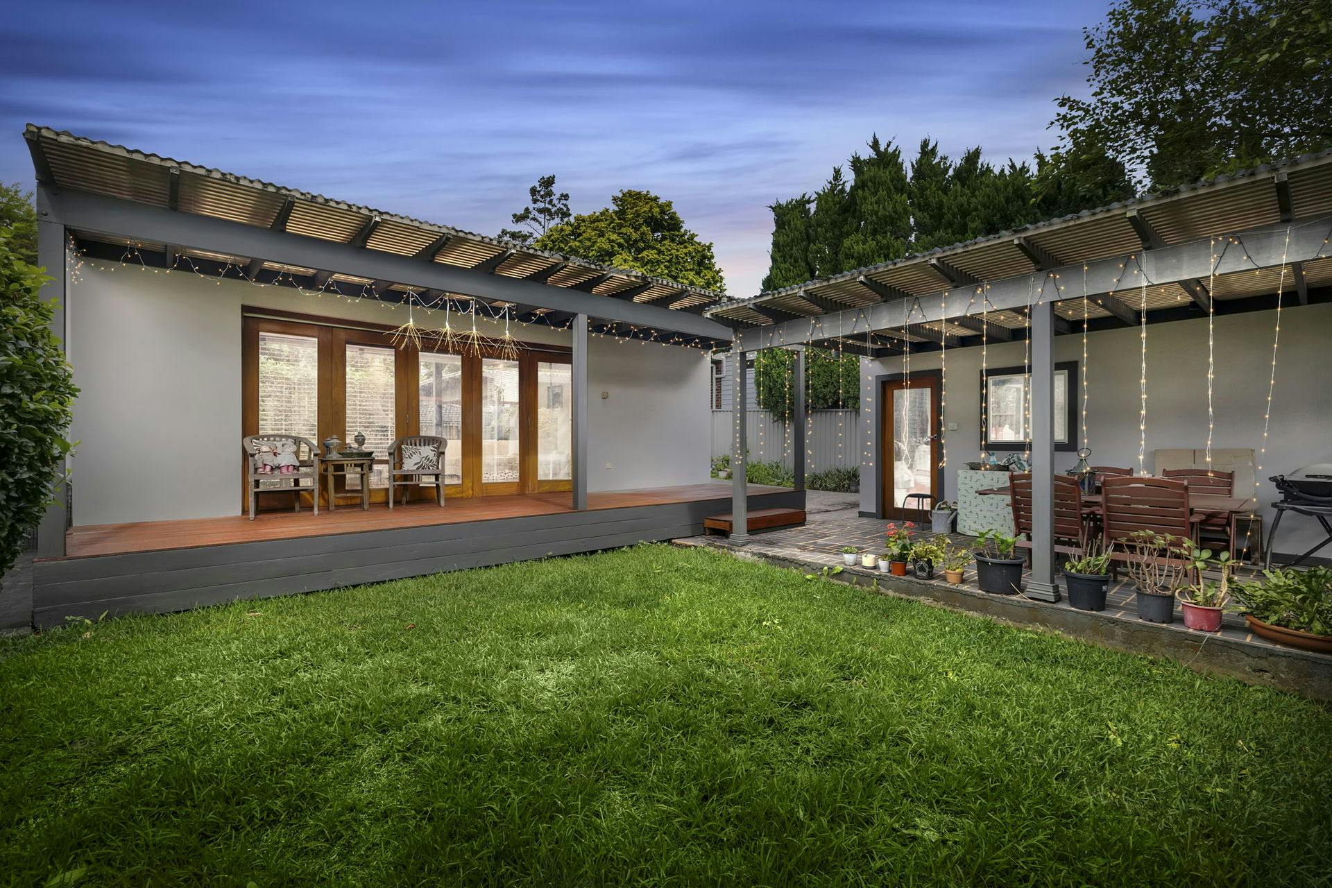 A wide side driveway provides secure off-street parking for several cars and leads to a lock-up garage and second undercover patio.