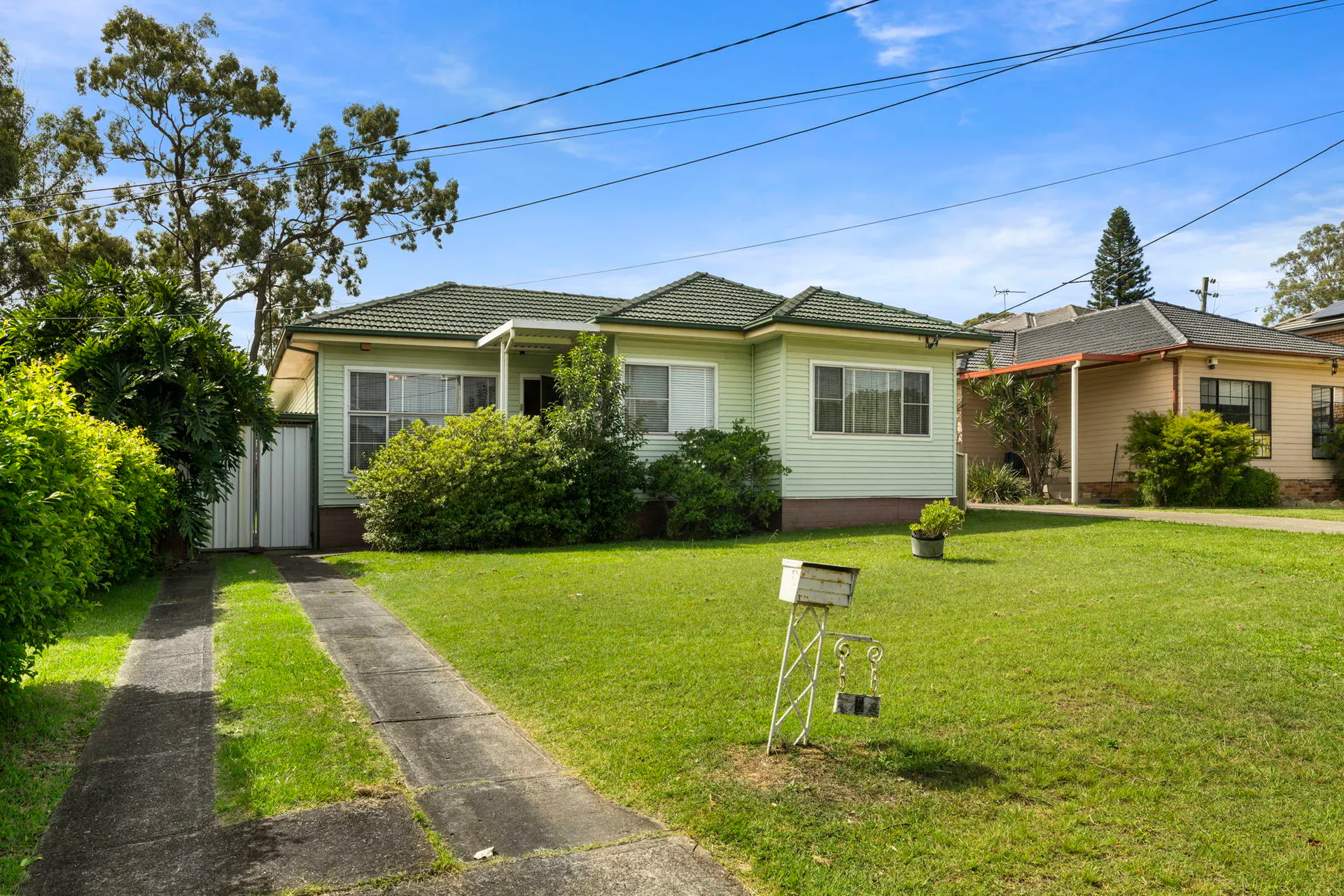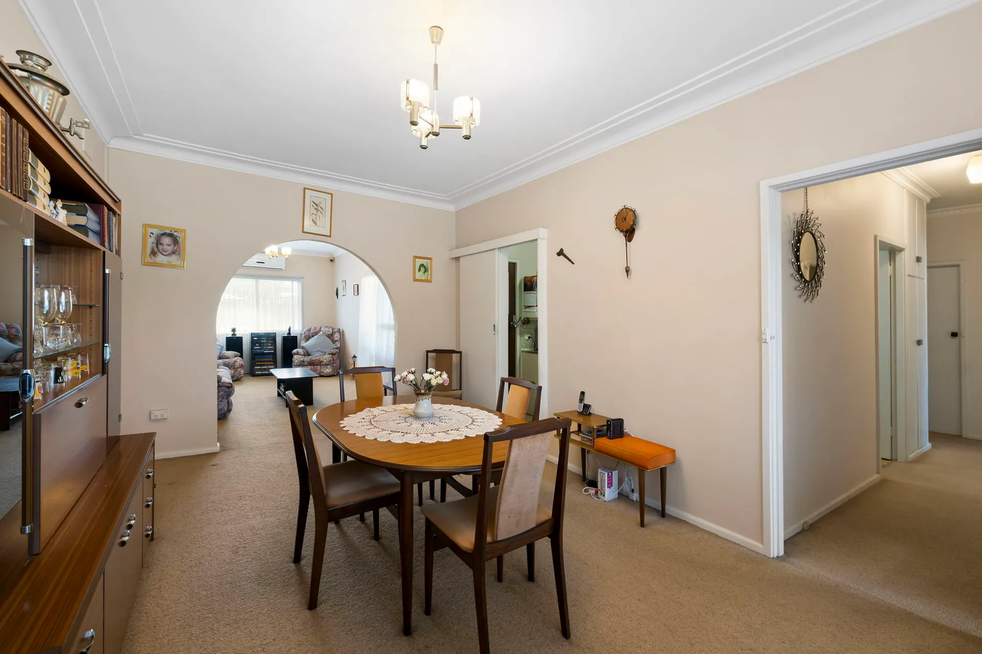 Comfortable interiors feature three bedrooms, eat-in kitchen, original bathroom, spacious living room and separate dining area. A side driveway leads to a carport, while the expansive rear lawn is bathed in northerly sunlight.