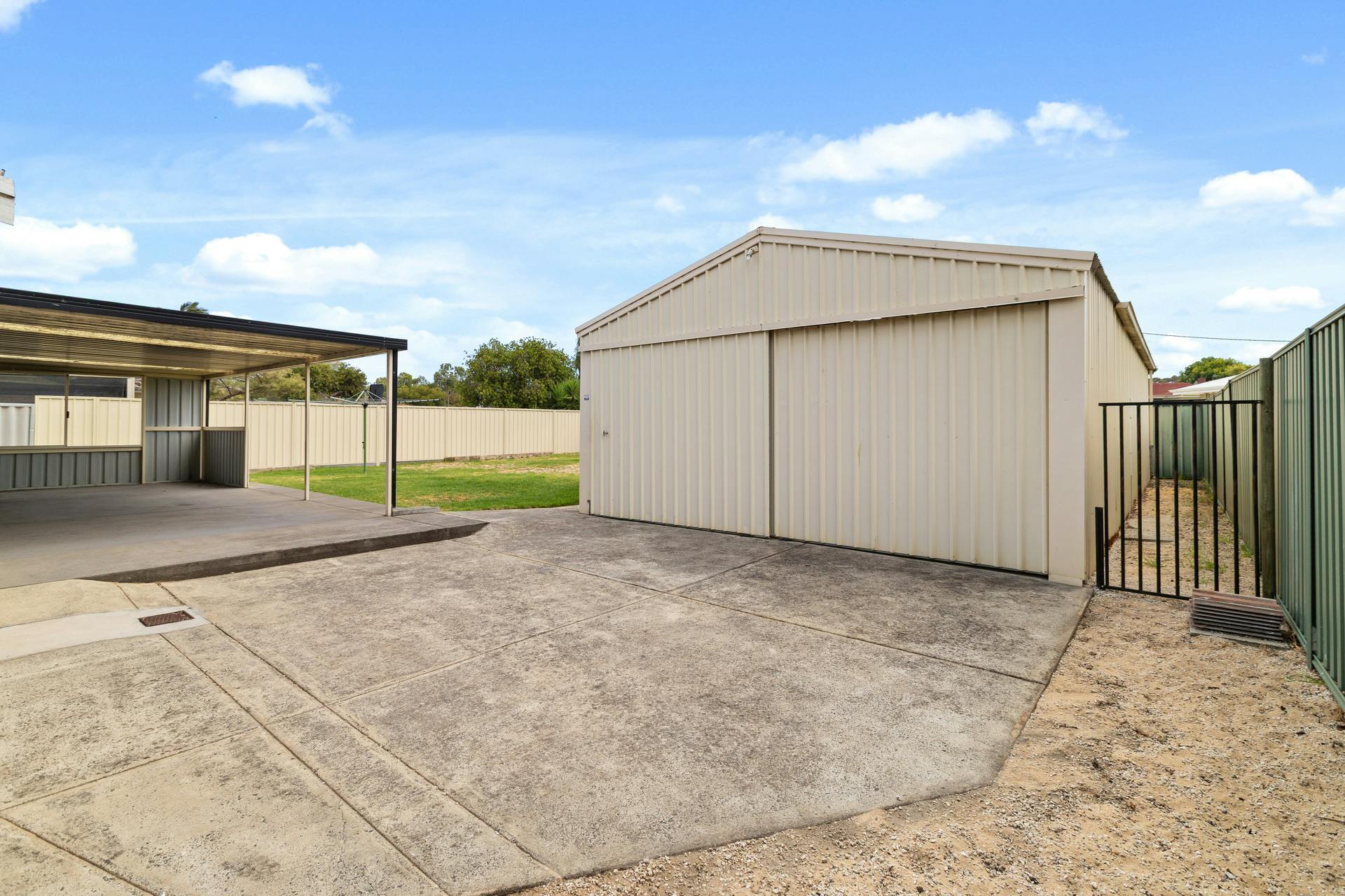 • Side access through a single carport with roller door