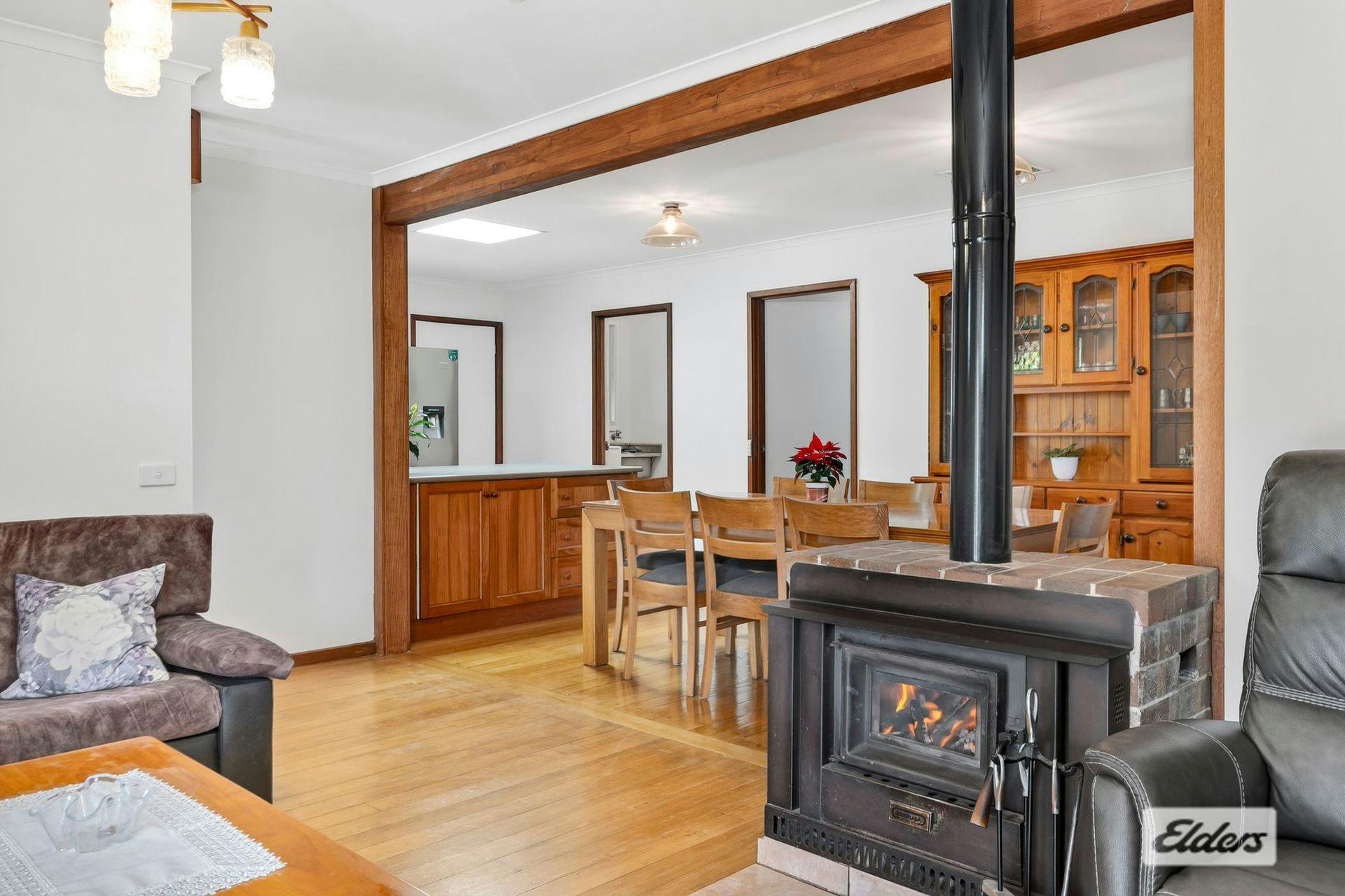 All three bedrooms are fitted with built-in robes and serviced by the updated family bathroom, with the convenience of a separate toilet accessed via the laundry. Comfort is assured year round with ducted evaporative cooling, a cosy wood heater in the lounge, and an additional gas wall furnace.