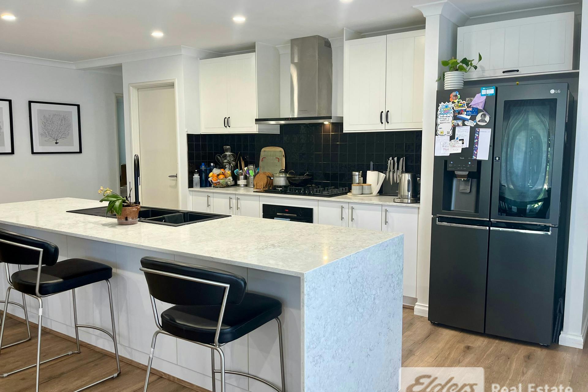 - Chefs delight kitchen with stone bench top and island bench with breakfast bar, quality BOSH appliances including gas stove and electric oven, providing ample bench and storage space