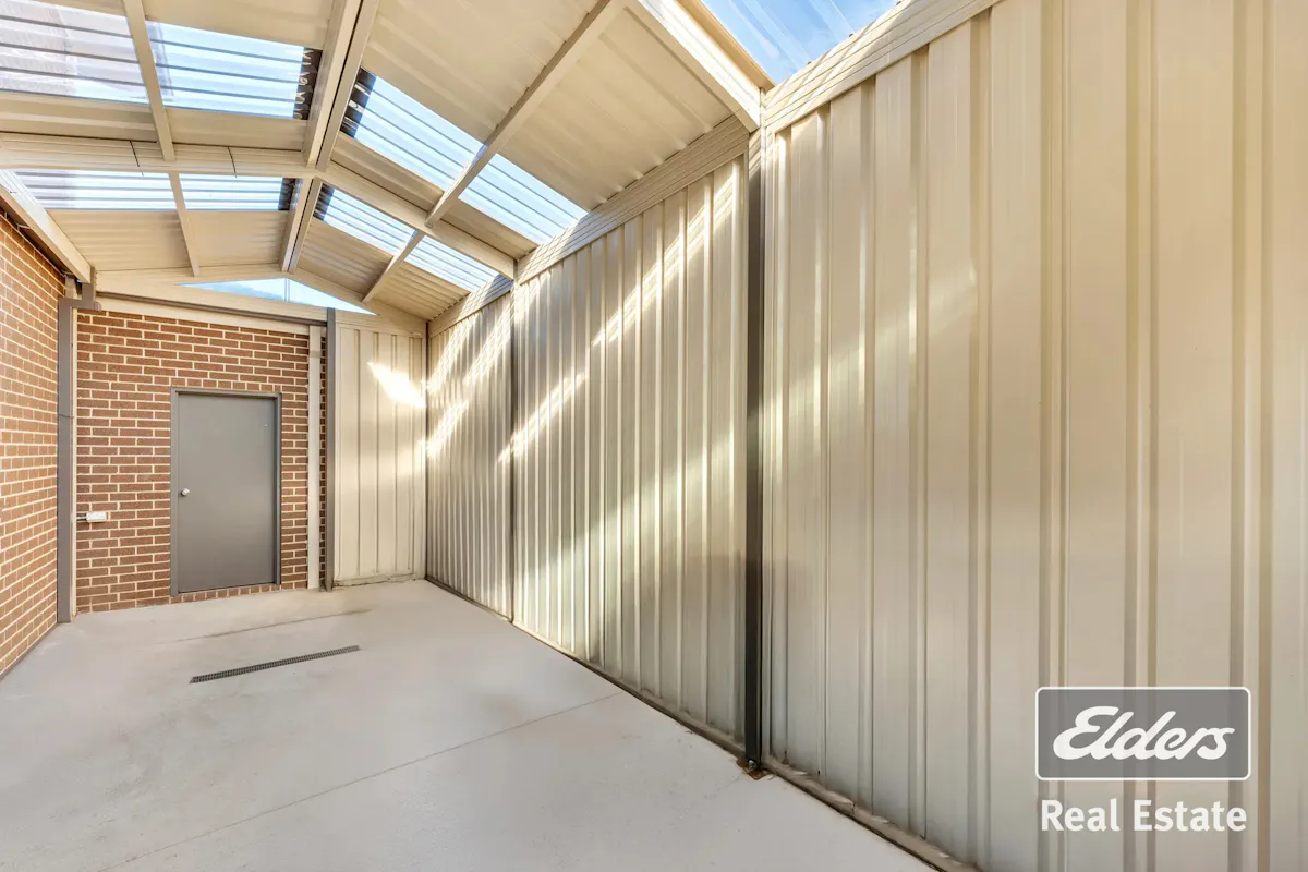 Outside, the backyard offers space for children, pets, and family gatherings. The gardens are fully landscaped with natural grass to the front and rear, supported by a mobile app-controlled irrigation and sprinkler system. A covered pergola, garden shed, side gate access, and exposed aggregate driveway complete the outdoor setting.