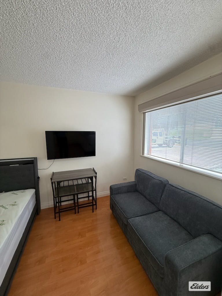 This neat and tidy studio apartment features a combined open bedroom, living and kitchenette, separate bathroom and one parking space.