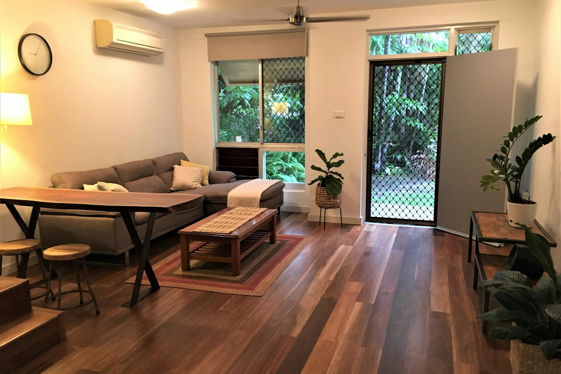 - Spacious living/dining areas open onto a second rear courtyard with leafy gardens