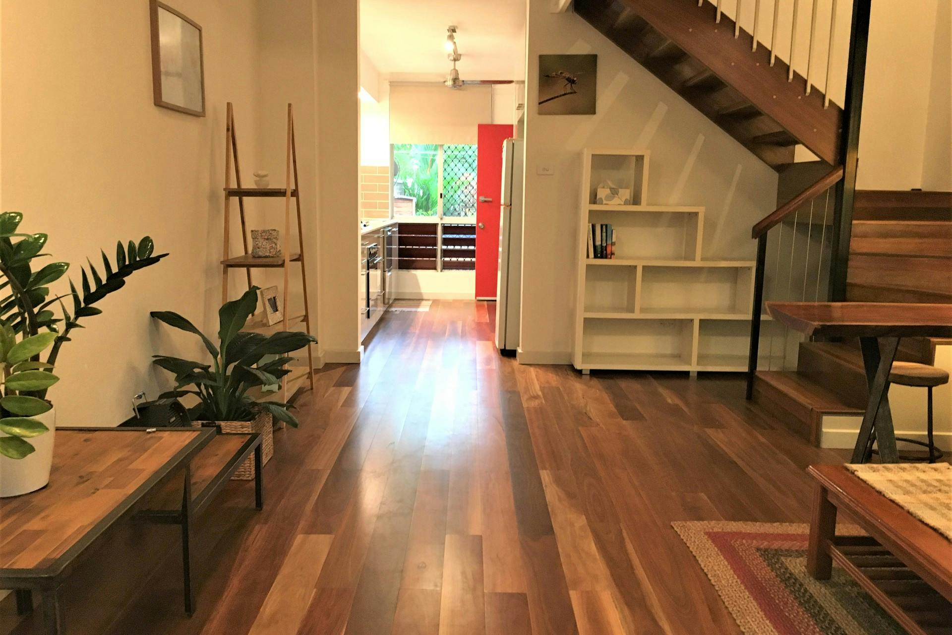 Stylish corner townhouse tastefully renovated and located in popular Parap area, situated in quiet block with leafy surrounds. Walking distance to the vibrant Parap Markets and minutes to the City.- Modern kitchen with gas stove and quality appliances including a fridge & dishwasher