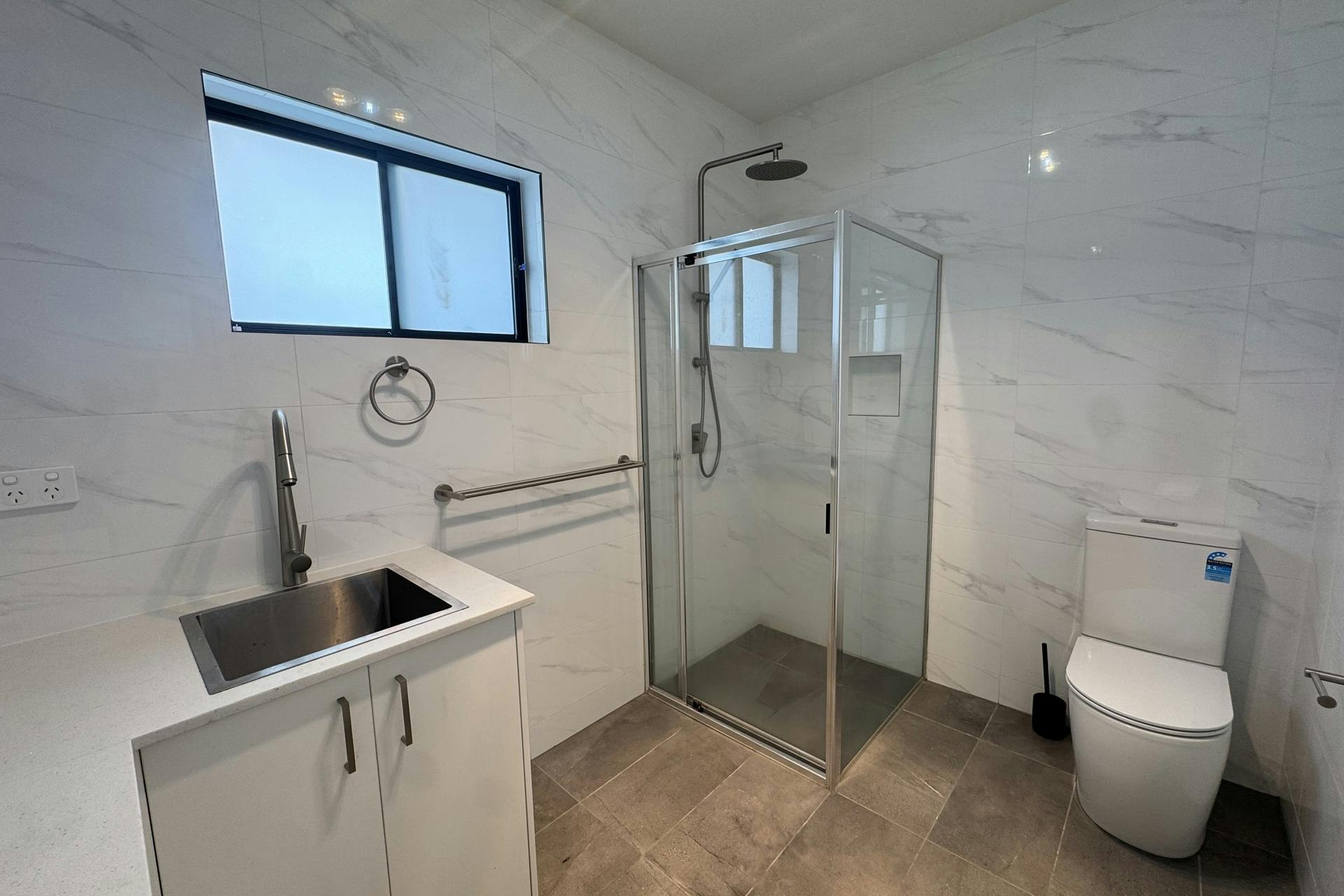 - Fully tiled bathroom combined with internal laundry