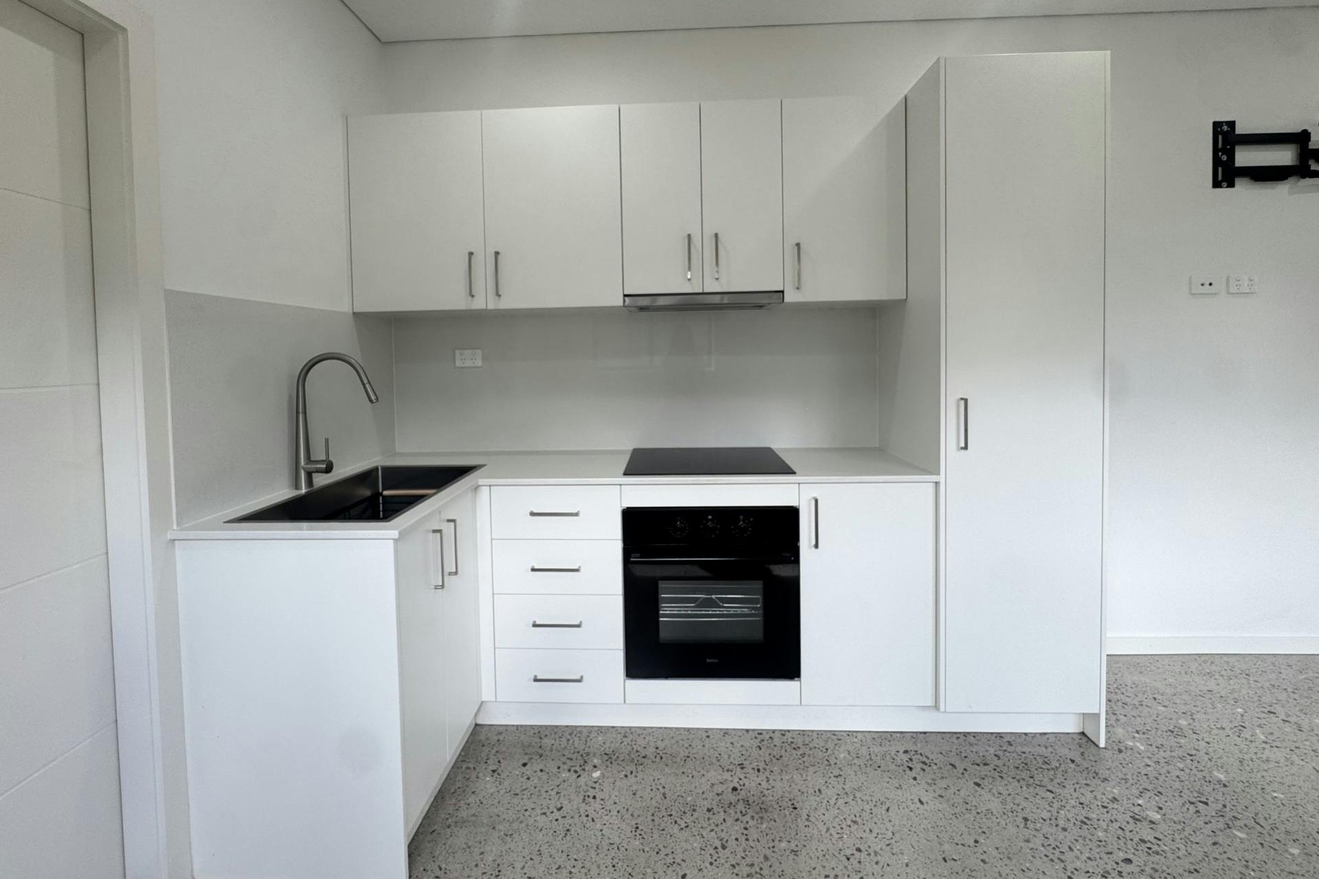 - Modern kitchen appliances including electric cooktop, oven, and rangehood