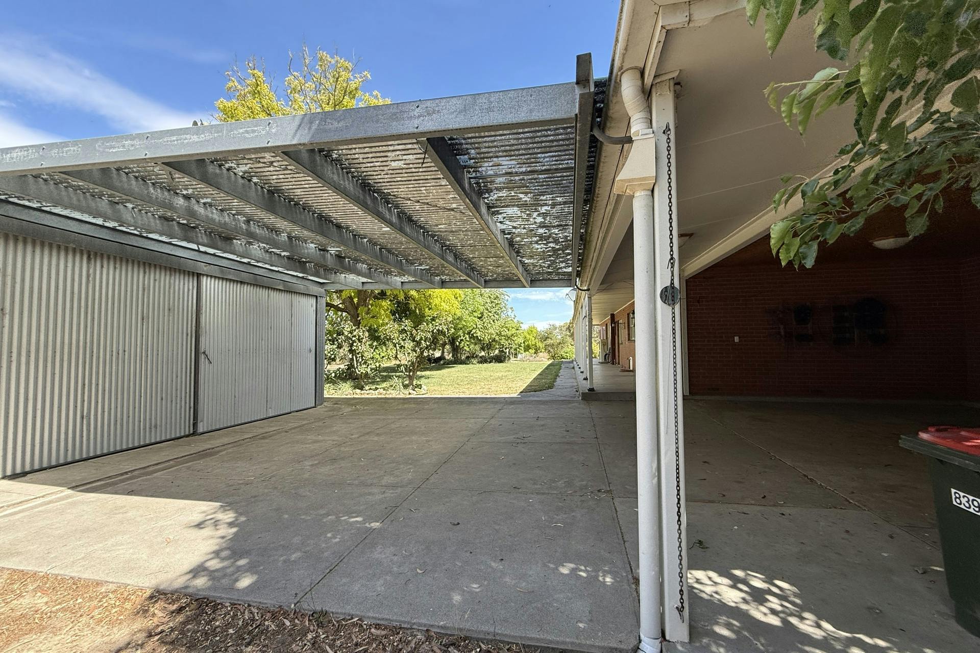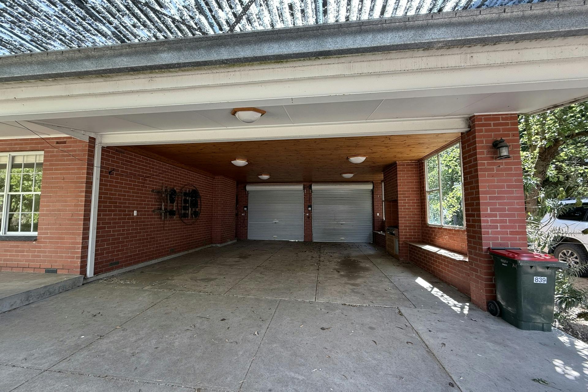 Large double carport with remote control roller doors.