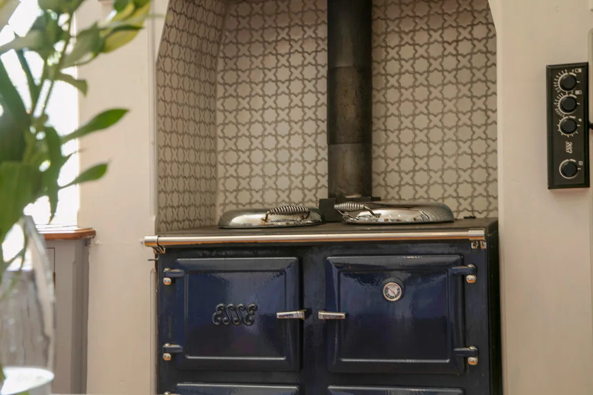 At the heart of the home is a beautifully appointed country-style kitchen, perfect for those who love to cook and entertain. It features a unique Esse hybrid wood stove, combining slow combustion heating with the convenience of two electric ovens and cooktop-offering both warmth and versatility year-round.