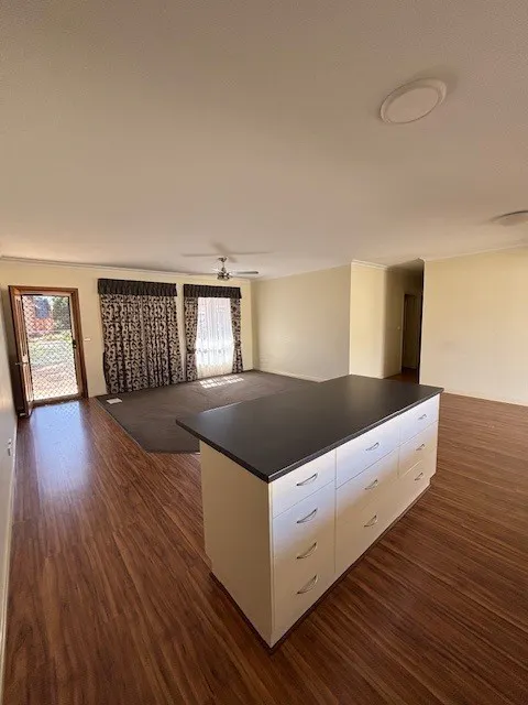 Built in 2010, this property is perfectly positioned to provide convenient access to local schools, childcare, and essential town services.The home features three well-sized bedrooms, two of which include built-in wardrobes. At the heart of the property is a spacious open-plan kitchen, living, and dining area, offering ample bench space and storage-ideal for both everyday living and entertaining. The central living area has a split system air conditioning unit, and each room has ceiling fans.