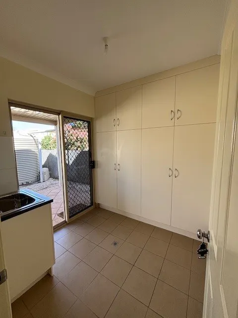 The laundry offers generous storage and opens directly to the clothesline via glass sliding doors.