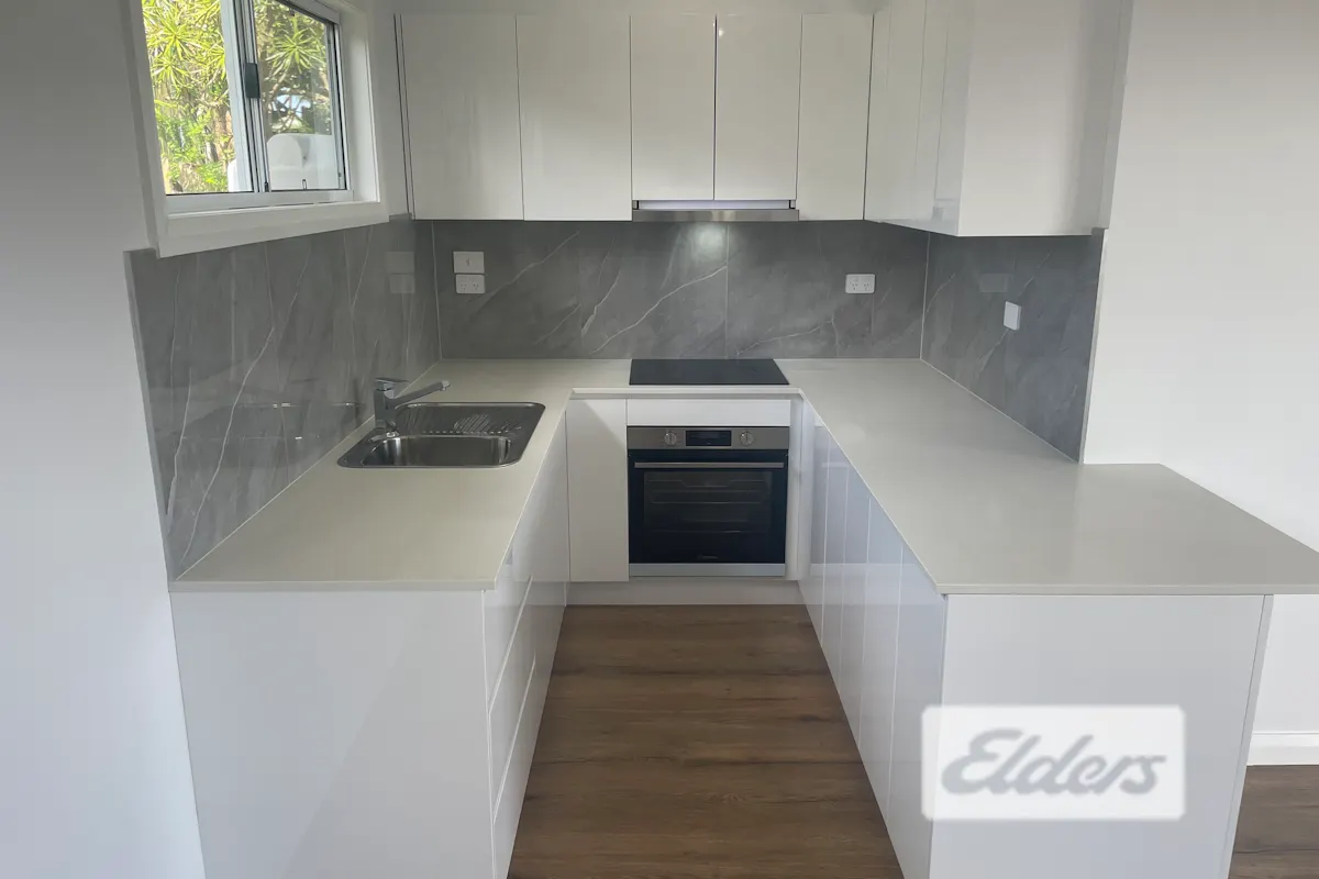 - Kitchen with electric cooking and stone benches