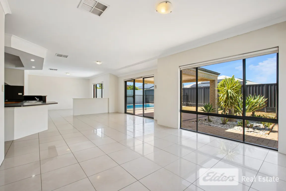 : Spacious 4 bedroom, 2 bathroom family home located within beachside Port Kennedy. This well-presented property offers multiple living areas, providing plenty of space for the whole family. The open-plan living and dining area overlooks the pool, creating a perfect setting for both relaxing and entertaining.- Spacious master suite with roller shutters and walk-in robe