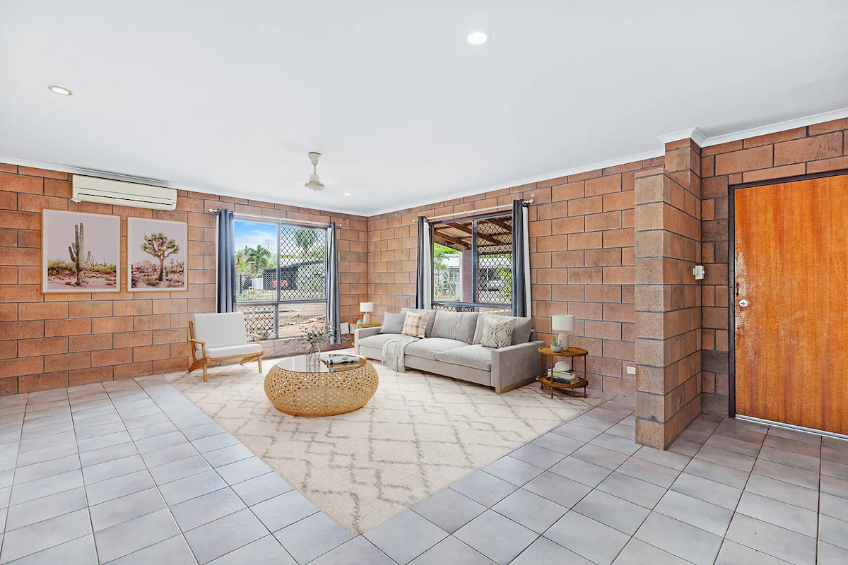 Spacious three-bedroom home on a large, open block. This property includes a classic kitchen, good-sized lounge, and unique cinnamon block walls that add a warmth and character to the interior.