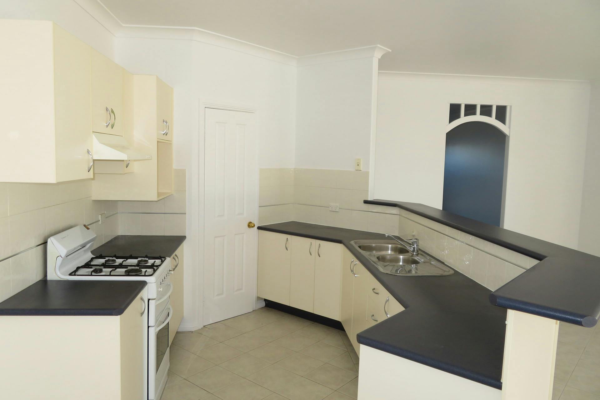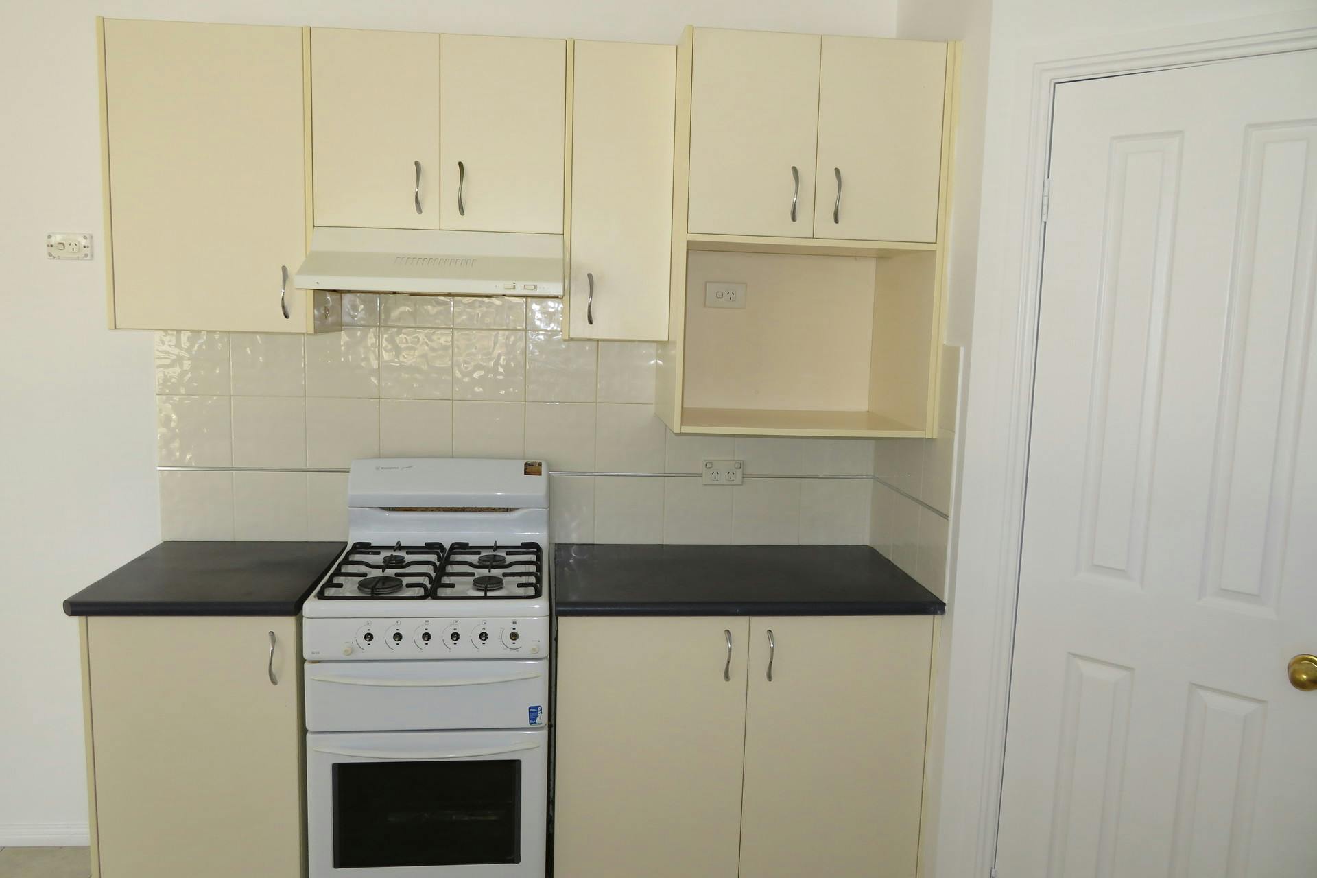 * Kitchen with free standing gas stove