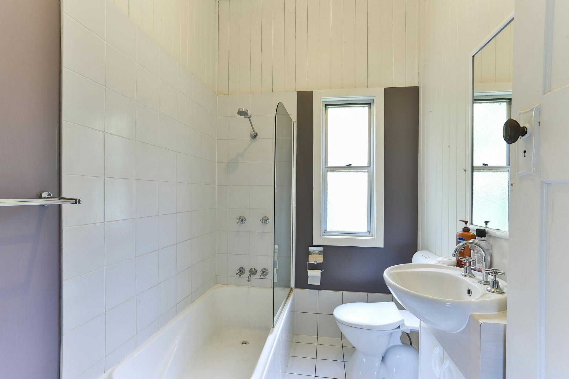 - Bathroom with shower over bath