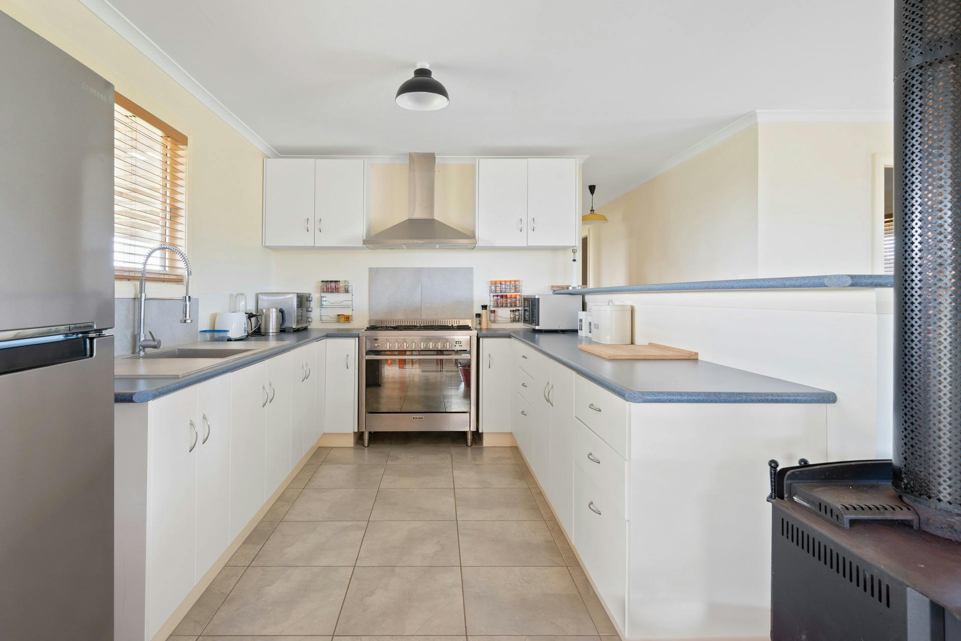 • Functional kitchen featuring gas cooking and generous cupboard storage.