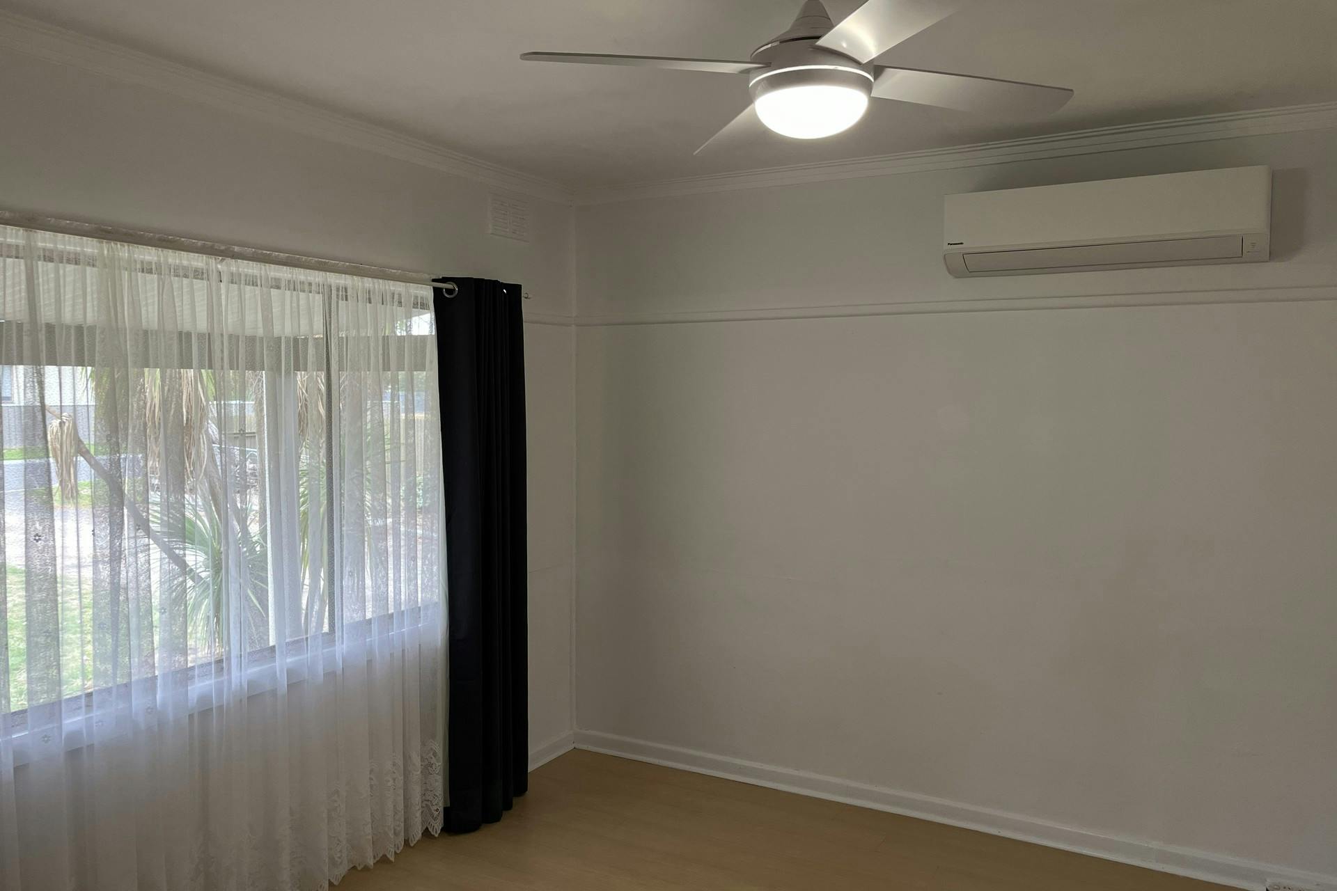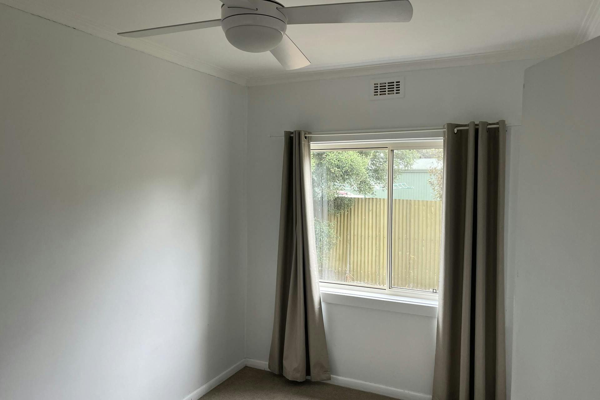 The kitchen is functional with good storage and bench space, and the lounge room includes a split system air conditioner. All three bedrooms are fitted with ceiling fans.