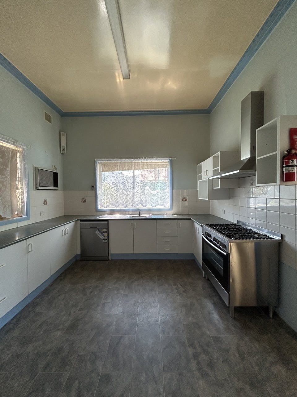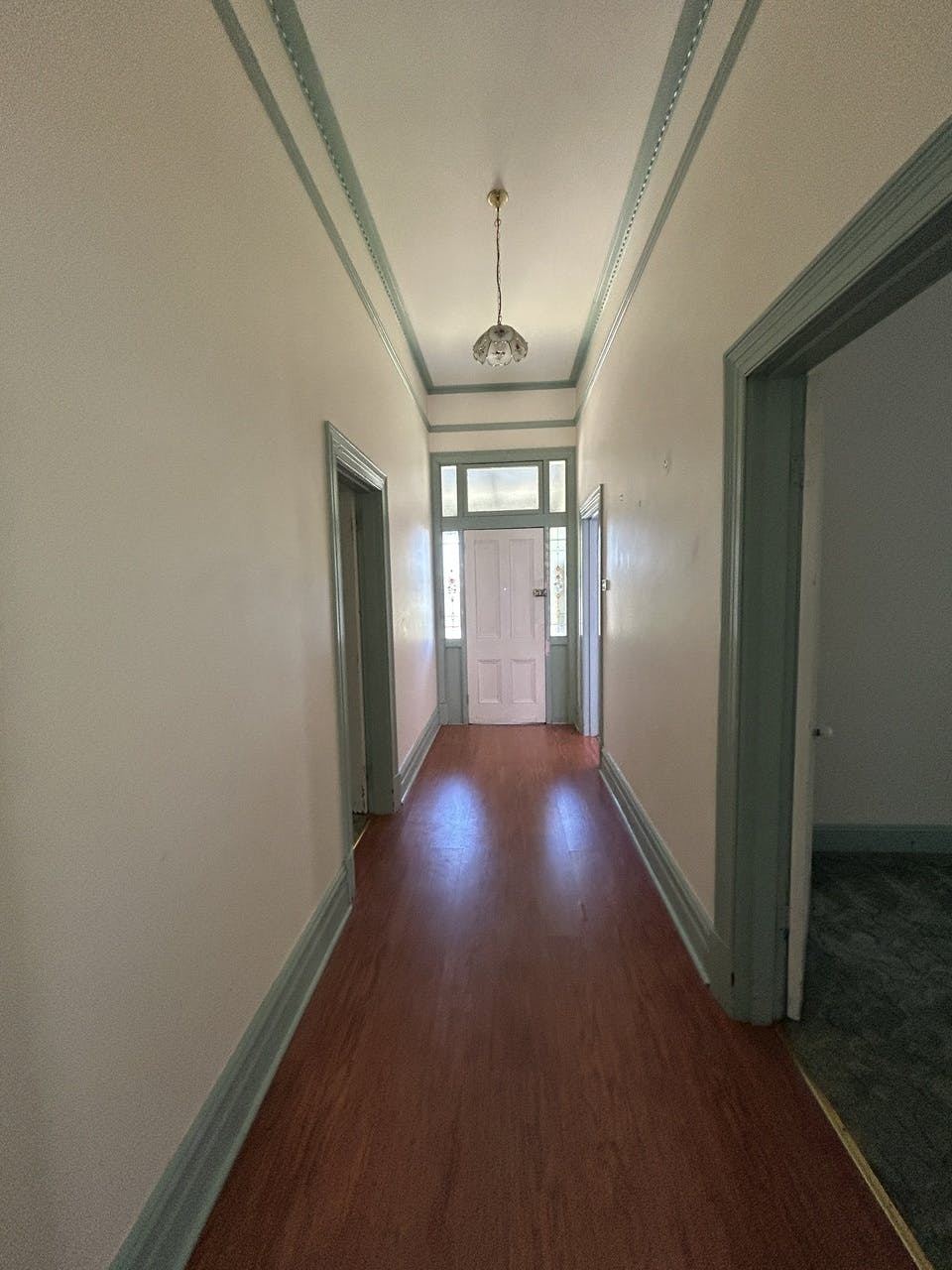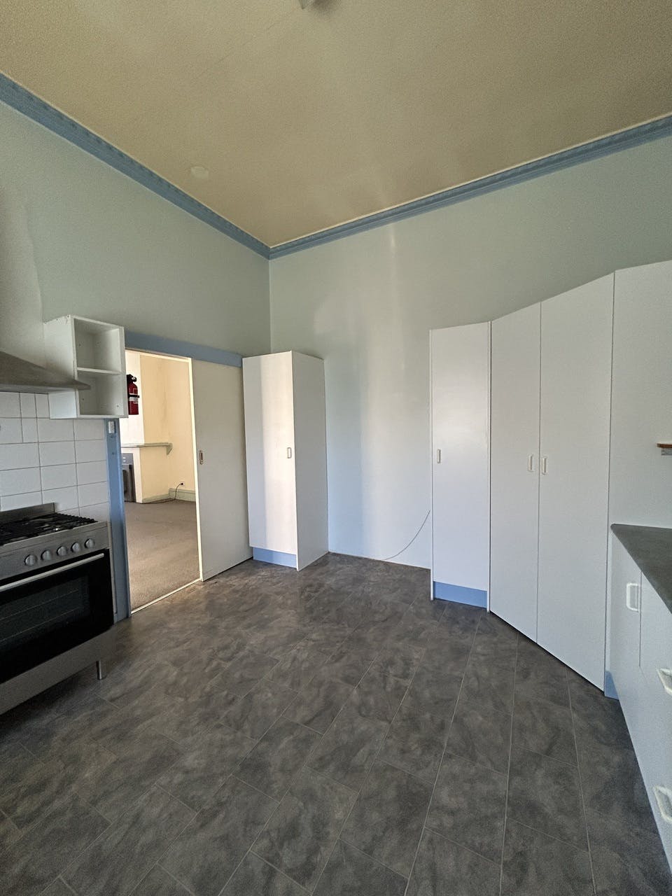 The home with three large bedrooms off a central hallway, a lounge with gas log fire, leading to an enclosed veranda section currently used as an office, a roomy kitchen with gas cooking, dishwasher, and large pantry cupboard, a rear porch/laundry, and a modern bathroom with a bath, a shower, and a corner vanity basin.An elevated veranda at the front overlooks a small front yard with a picket fence while at the rear is a secure yard with a 3 bay steel framed shed and an older original garage.