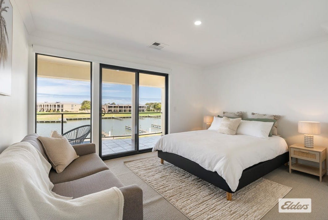 This stunning waterfront home at 31 Vesta Drive, Hindmarsh Island offers relaxed coastal living with beautiful views over the water and passing boats. Designed for comfort and entertaining, the home features spacious open plan living, seamless indoor outdoor flow, and a balcony perfect for unwinding in the evenings with a glass of wine while watching the sun set over the marina.