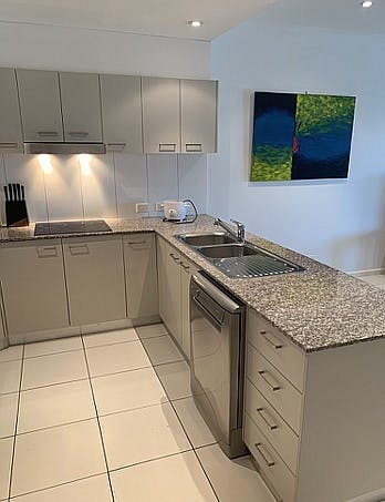 - Modern kitchen with lots of overhead and under bench cupboard space