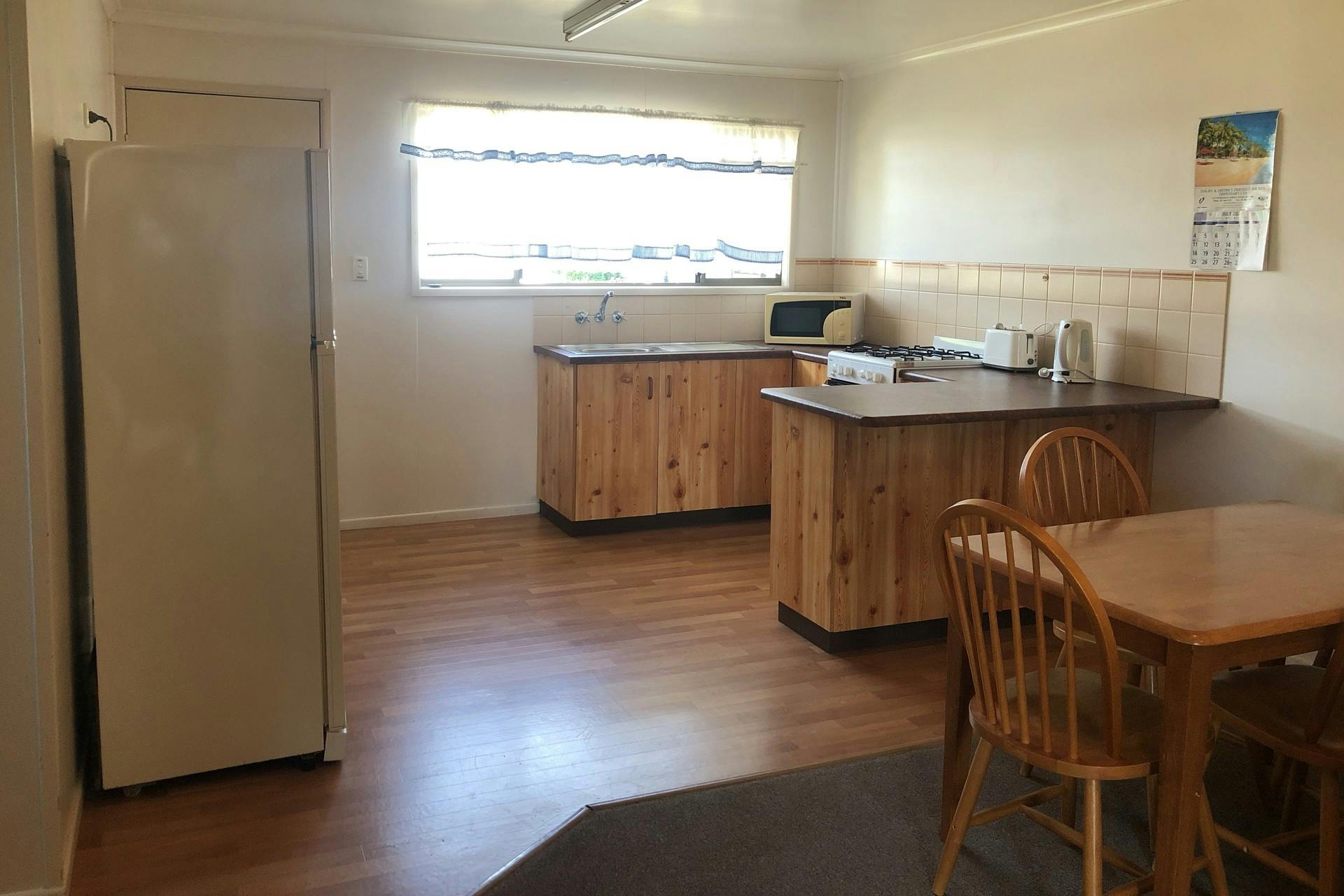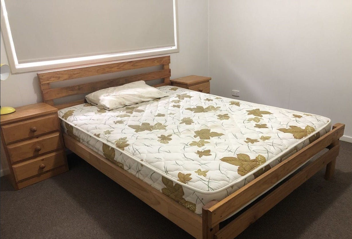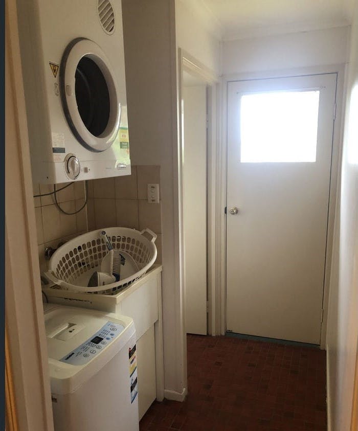 - Two bedrooms both include built-in cupboards, main with air conditioning