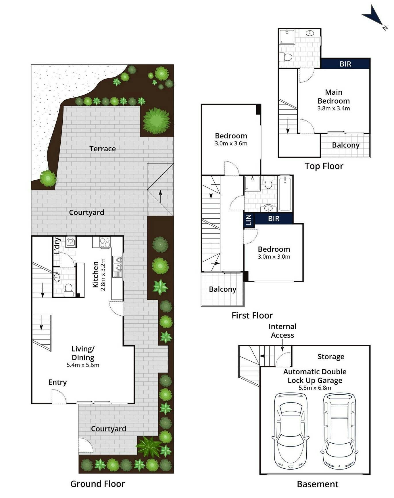 - Elevated alfresco entertaining space, private courtyard