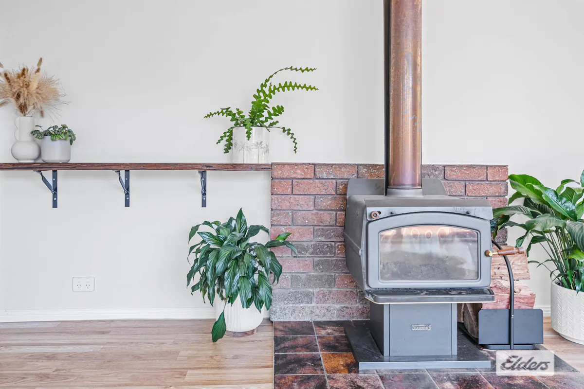 Split system air conditioning plus slow combustion wood heater for year-round comfort