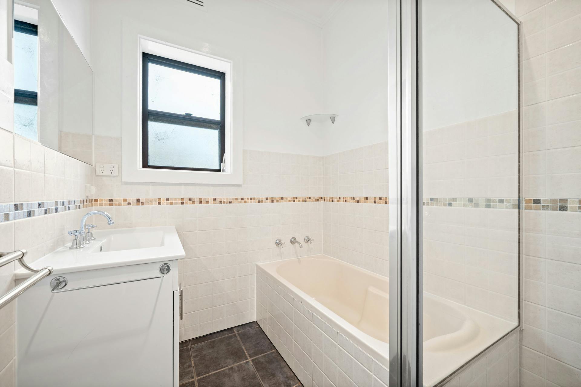 - Renovated bathroom offers both separate shower and bath, along with modern vanity. Separate toilet for added convenience.