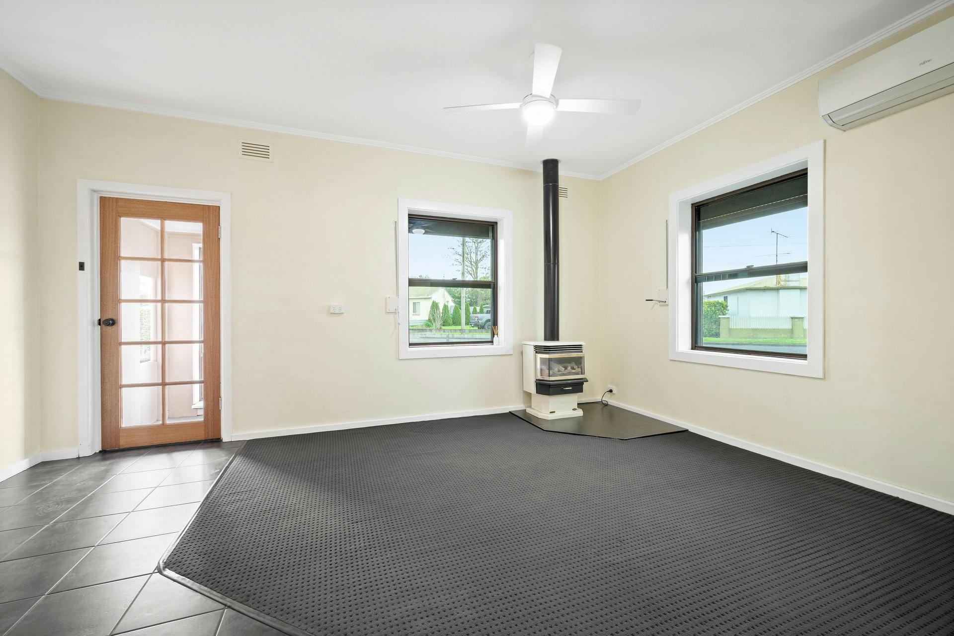 - Carpeted loungeroom serviced by ceiling fan, reverse cycle air-conditioner and cozy gas log heater.