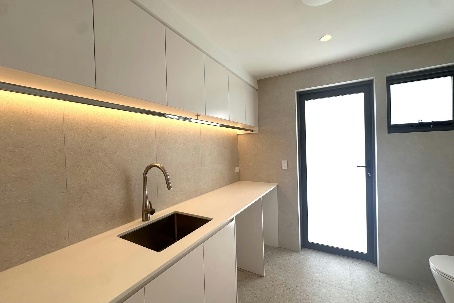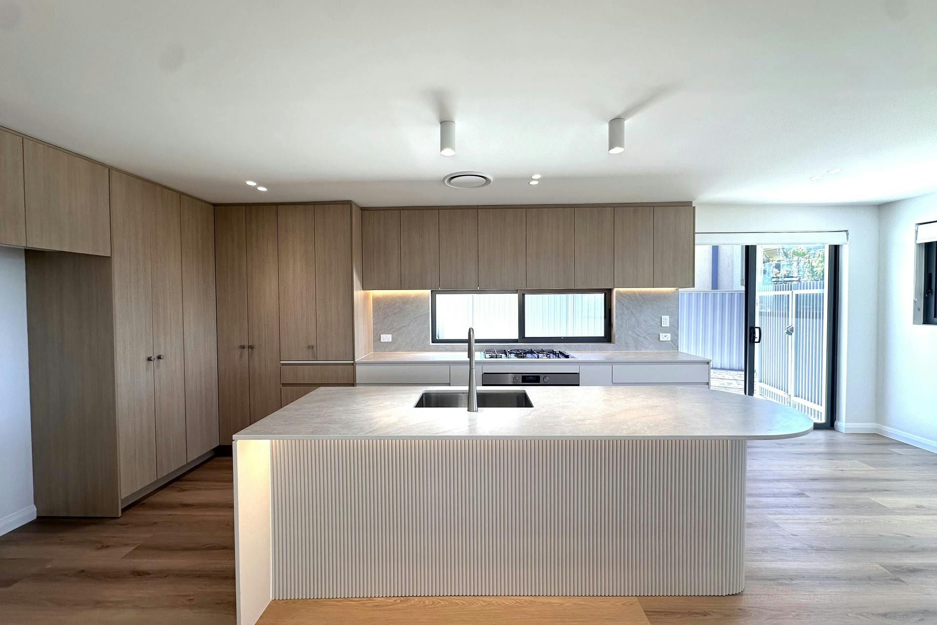 - State-of-the-art modern kitchen equipped with premium appliances, expansive benchtops, and ample cupboard space