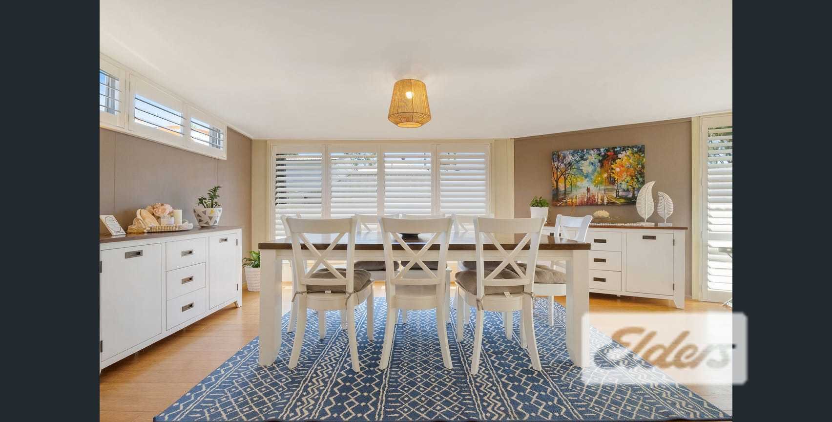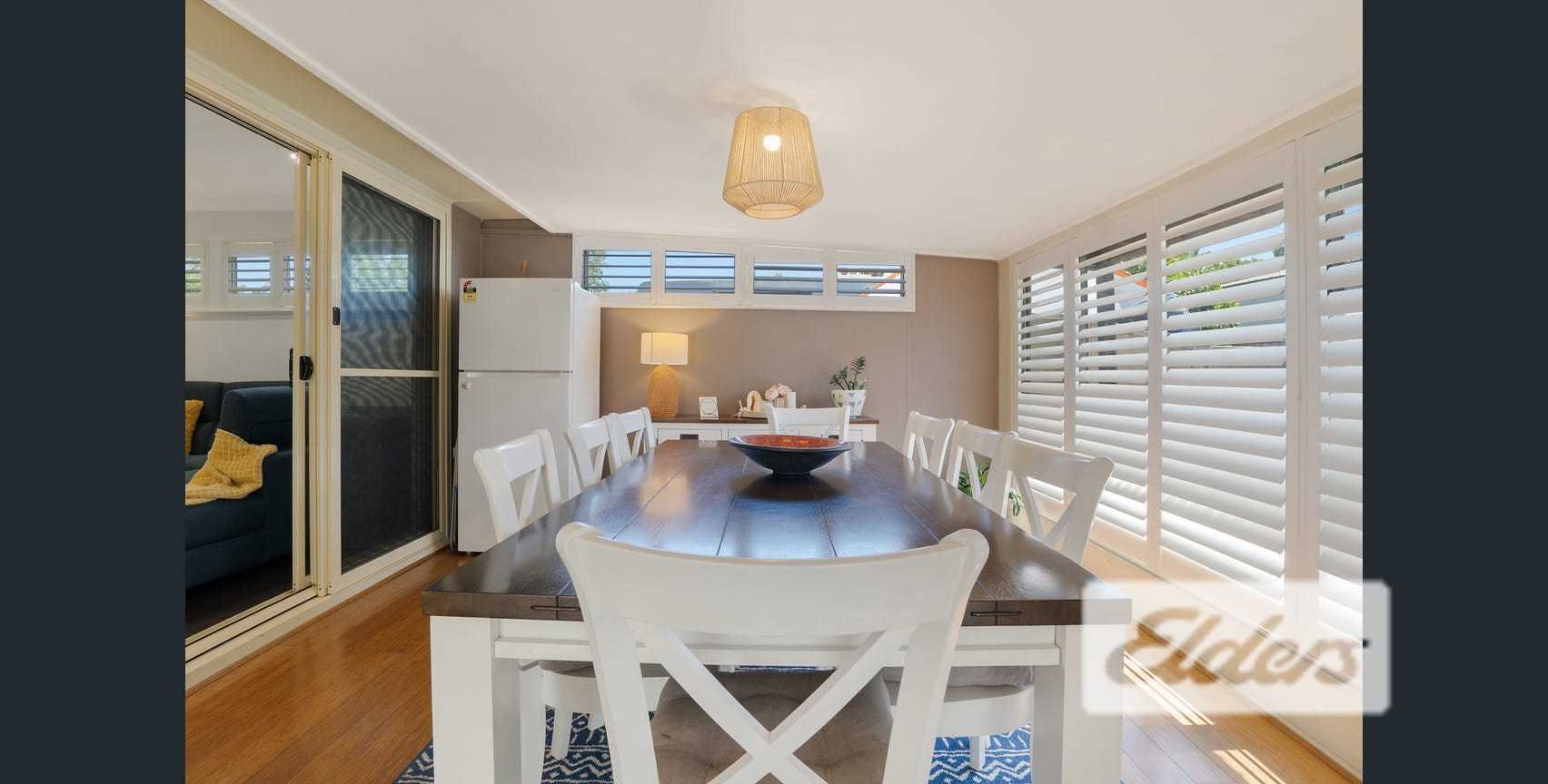 There is also sunroom featuring large windows with shutters, making it ideal for a formal dining area and space for a second lounge area.